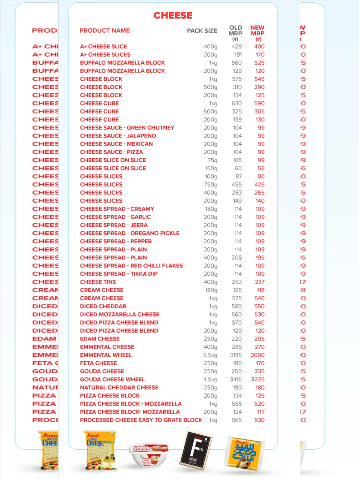 Amul Cheese Products New GST Price List in PDF download free from the direct link below.