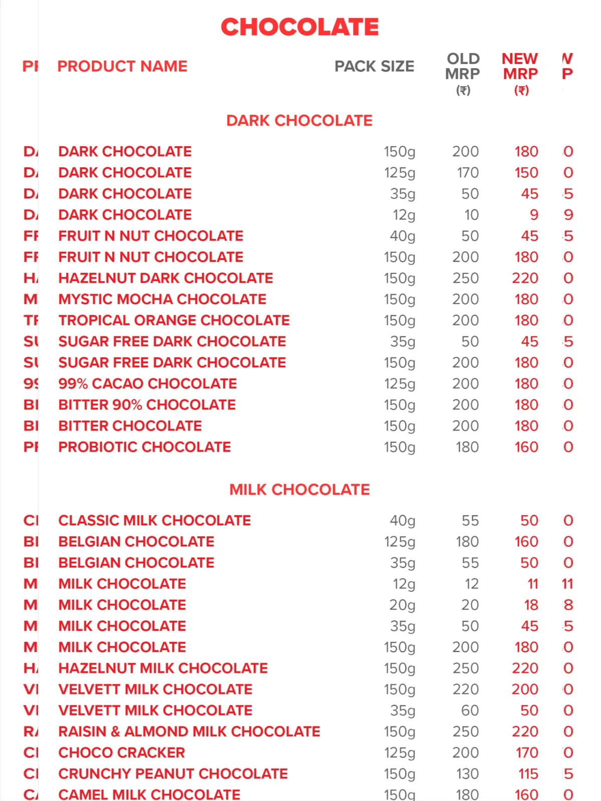 | FRUIT N NUT CHOCOLATE | 150g | 200 | 180 |