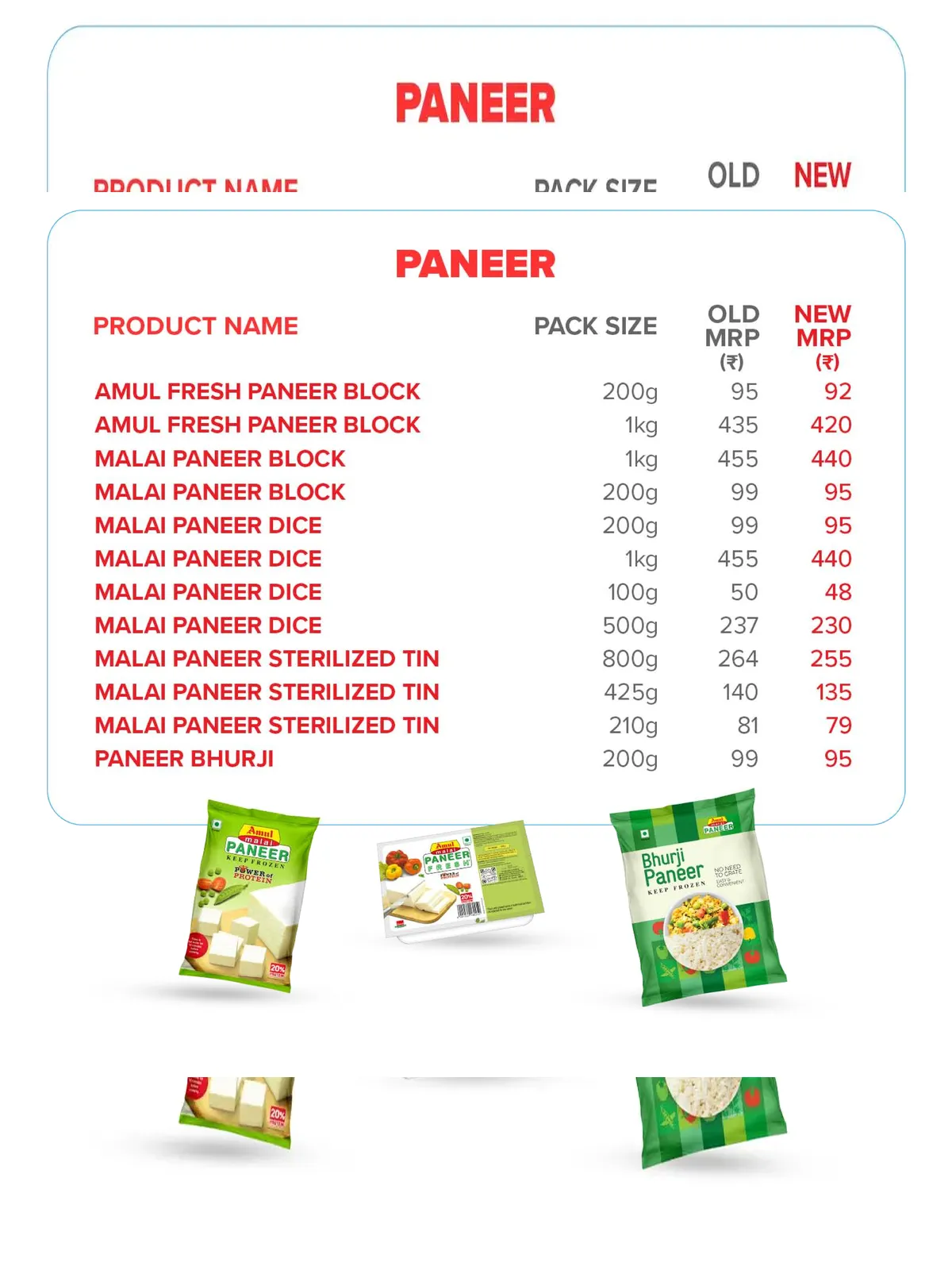 Amul Paneer Products New GST Price List in PDF download free from the direct link below.