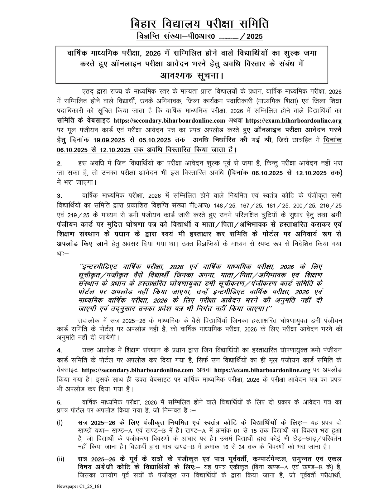 Bihar Board Exam Date 2026 for class 10 & 12 will be announced by the Bihar School Examination Board (BSEB) and students can check and download the date sheet/time table on the official websites of the board- biharboardonline.com and biharboardonline.bihar.gov.in.
