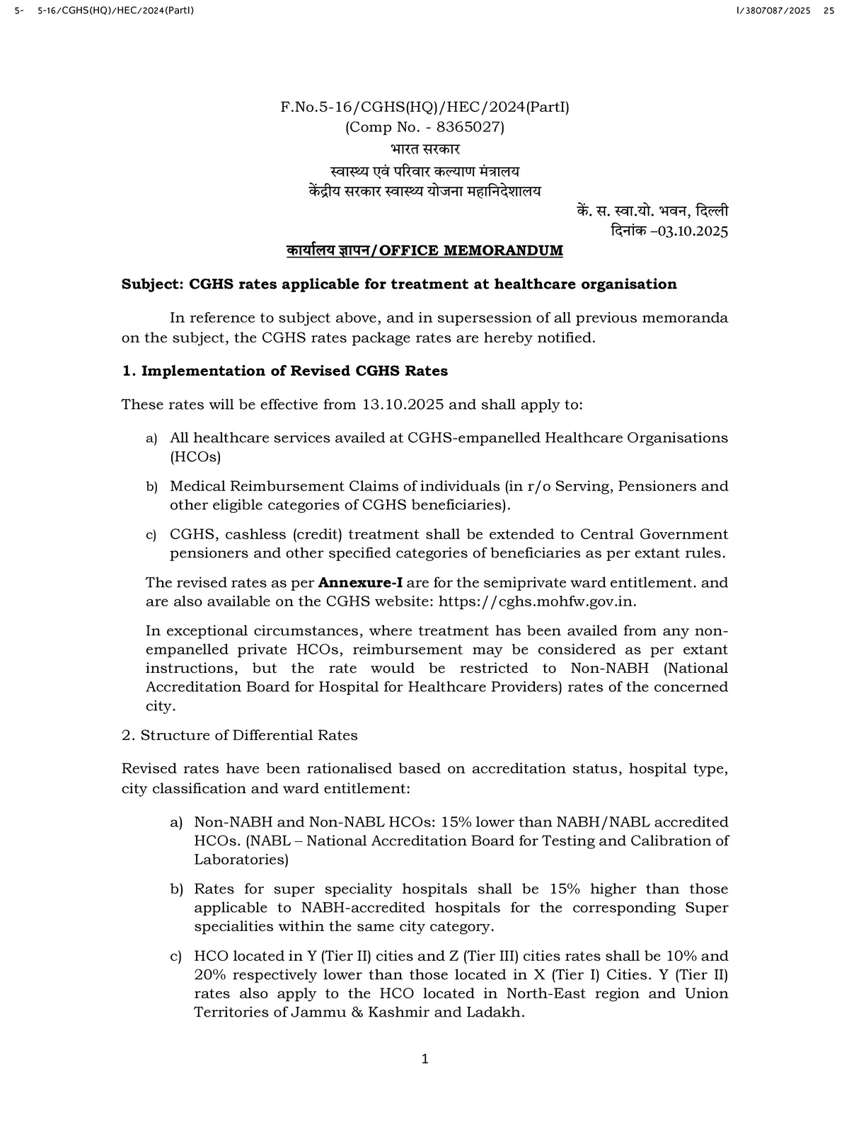 Central Government Health Scheme (CGHS) has changed the prices for general surgeries. These new prices started from 3rd October, 2025, as per a notice from the Ministry of Health.