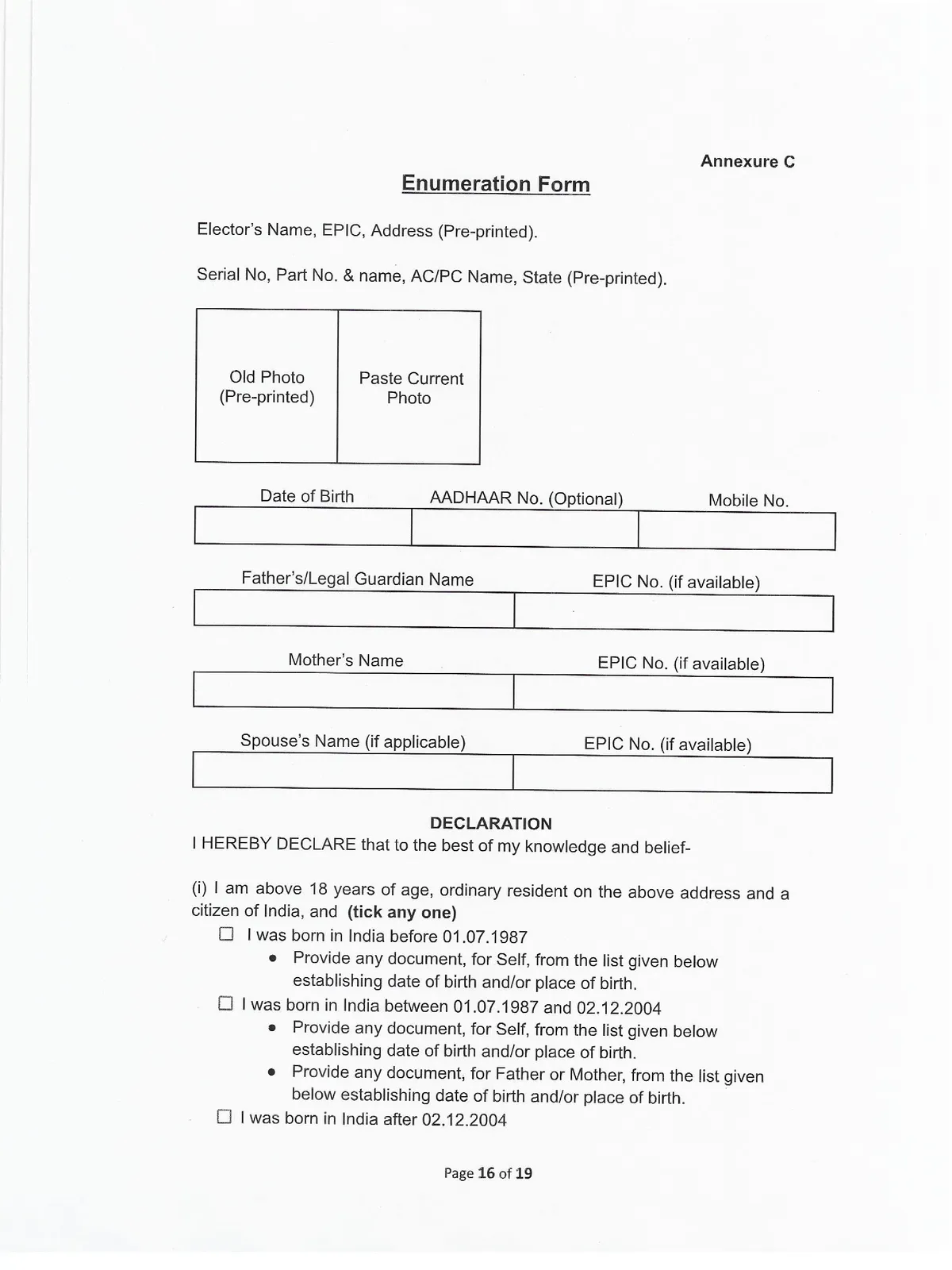 - National Register of Citizens (wherever it exists)