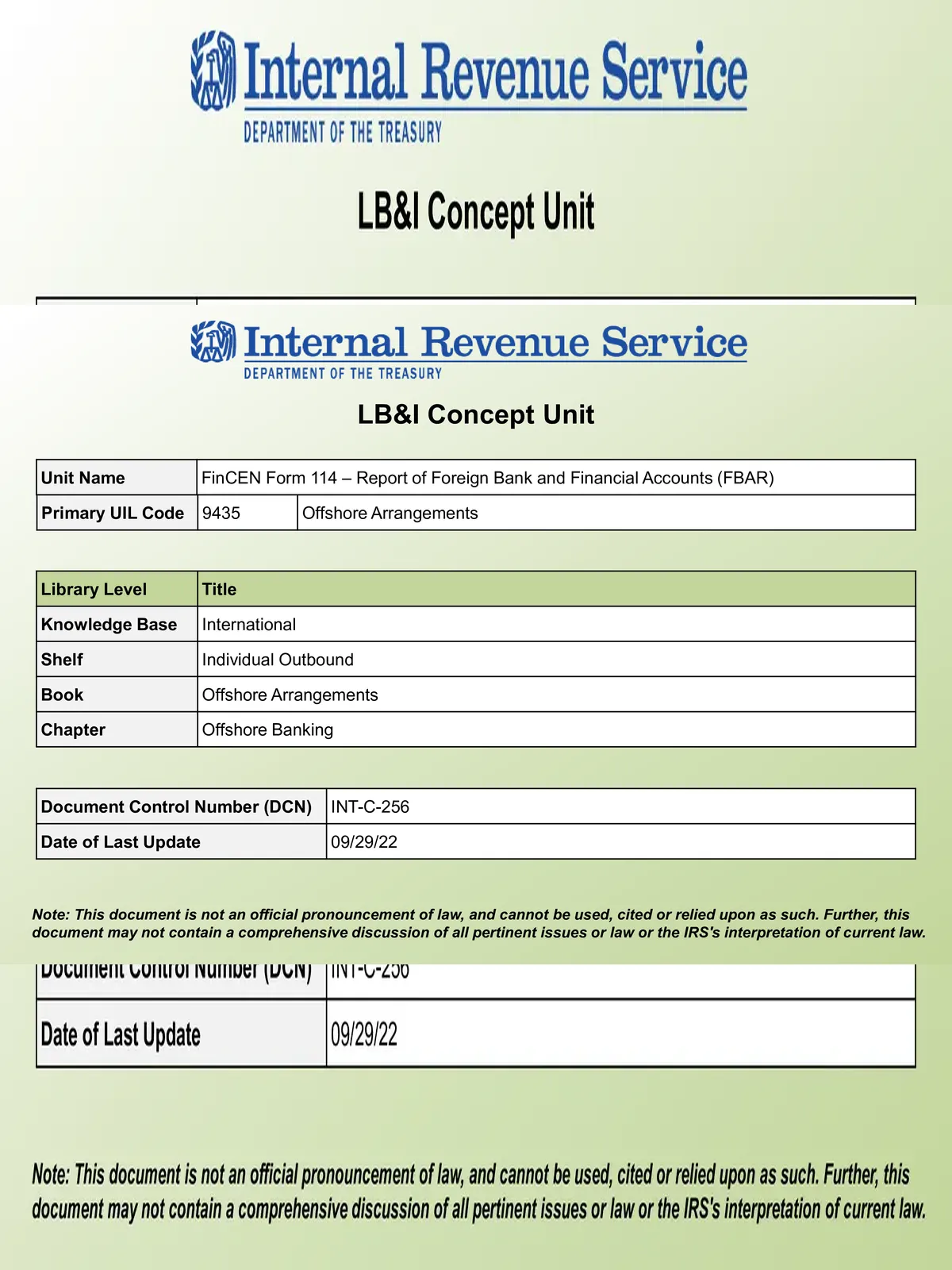 FinCEN Form 114 - Summary