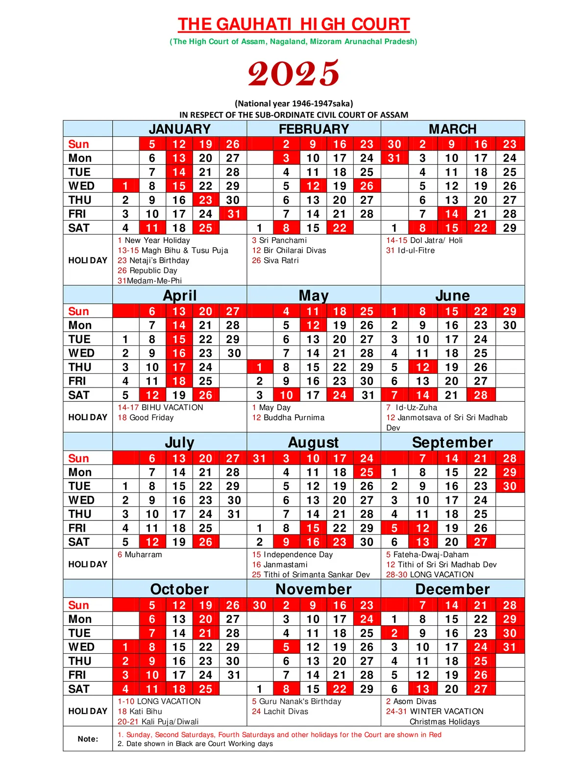 You can download the Gauhati High Court Holiday List in PDF format using the link given below.