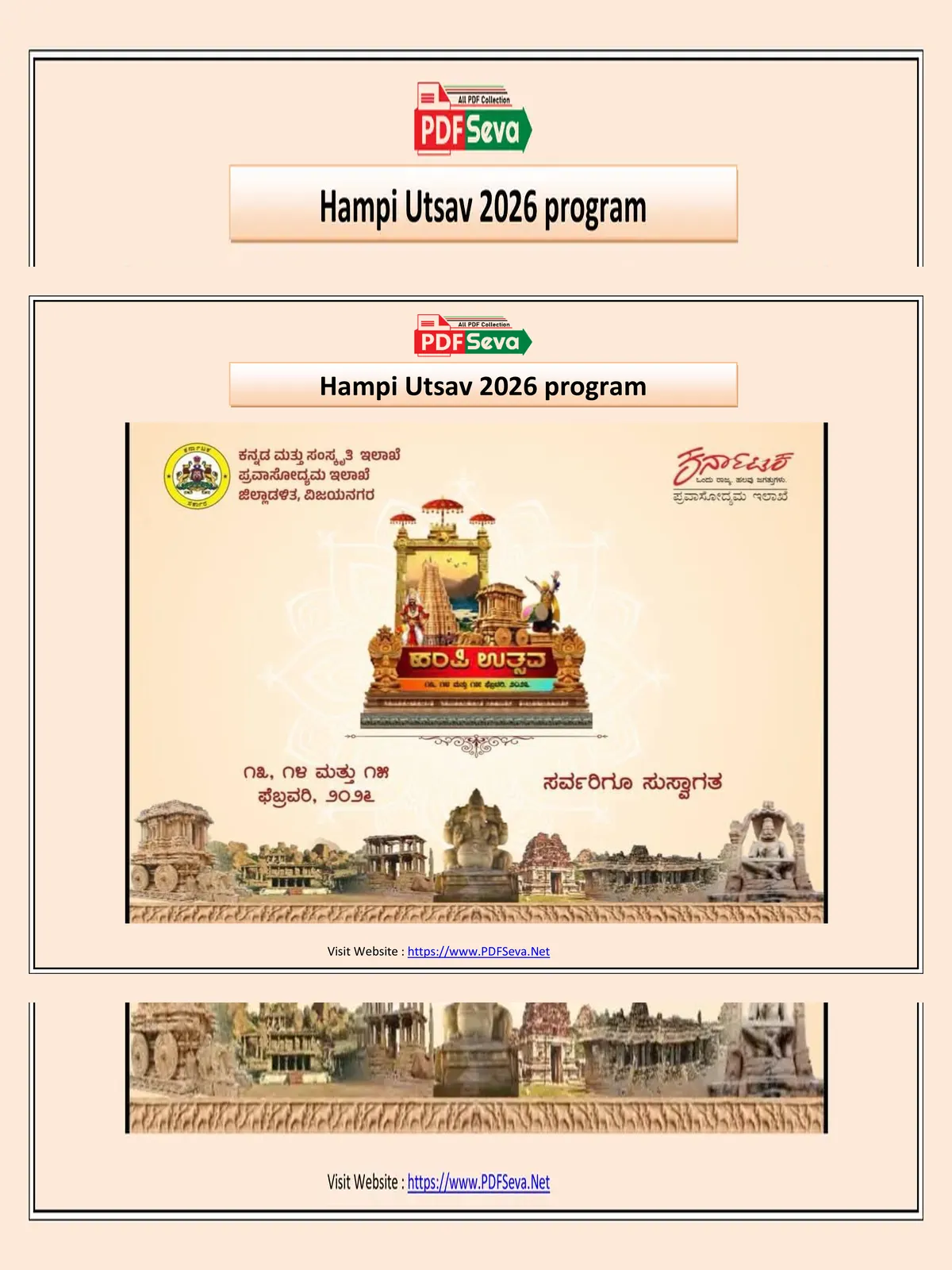 Every year, many visitors search for the Hampi Utsav 2026 schedule PDF, including event times, artist details, procession routes, and venue information. Having the full program in advance makes it easier to plan your visit, enjoy the main attractions, and not miss any important performances.