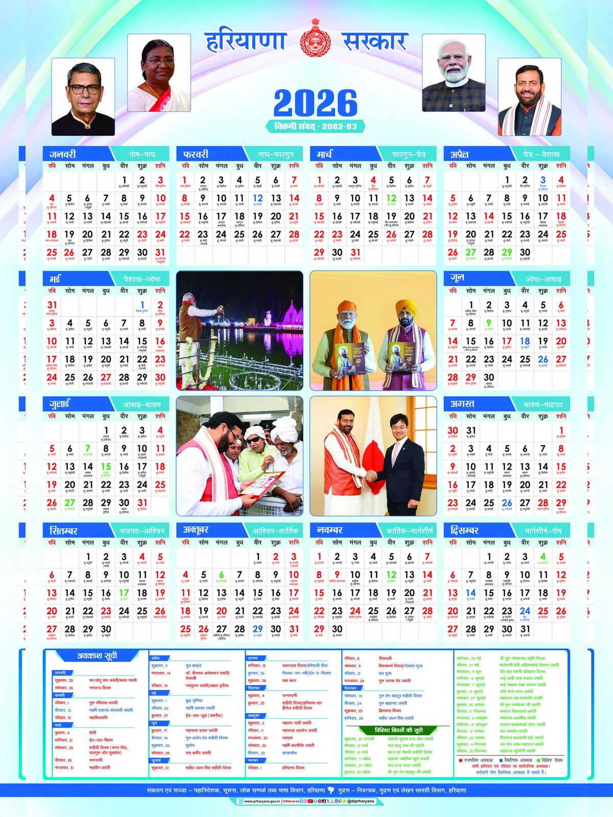 Haryana Govt Calendar 2026 gives a complete list of holidays and important dates announced by the Haryana Government. It includes gazetted holidays, restricted holidays, and other official observances for the year 2026. This calendar helps government employees, students, and the general public plan their work, travel, exams, and personal activities in advance. It is a useful guide to know which days government offices, schools, and banks may remain closed in Haryana during 2026.