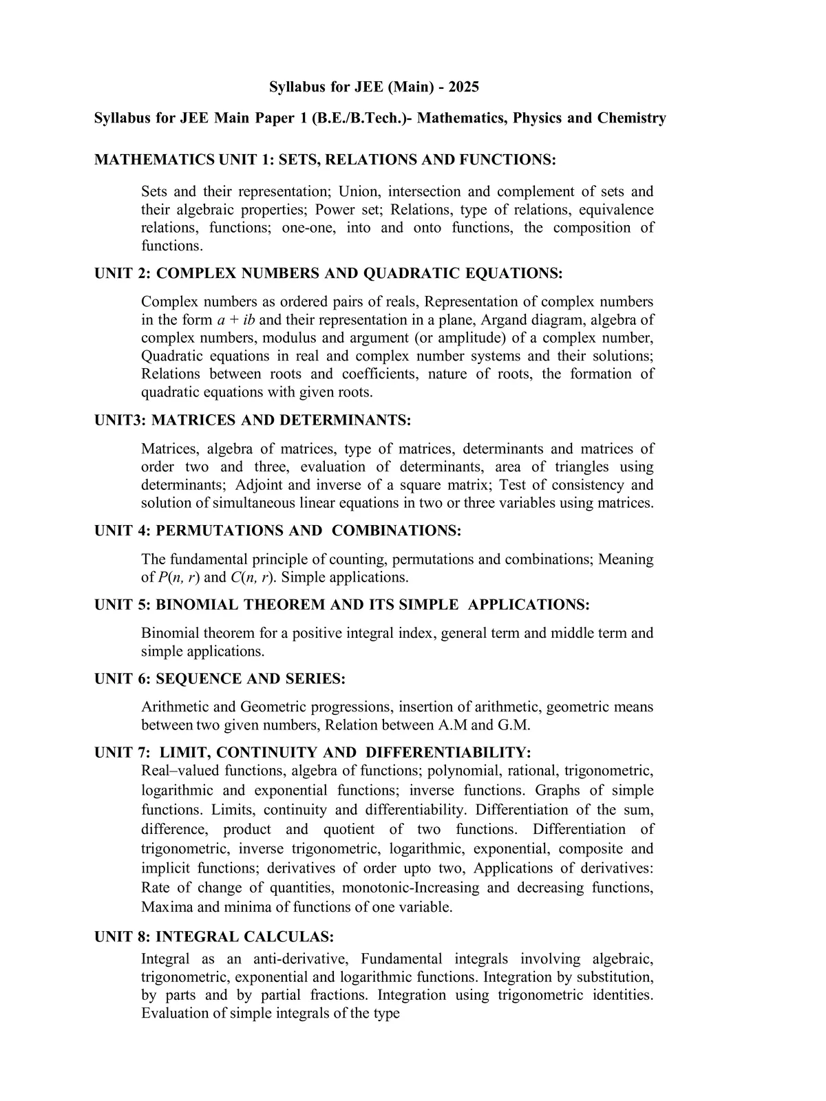JEE Mains Syllabus has been released by the NTA (National Test Agency) from the official website jeemain.nta.nic.in or it can be directly downloaded from the link given at the bottom of this page. The JEE Main syllabus PDF comprises the subject-wise topics which will be asked in the NTA JEE Main exam.