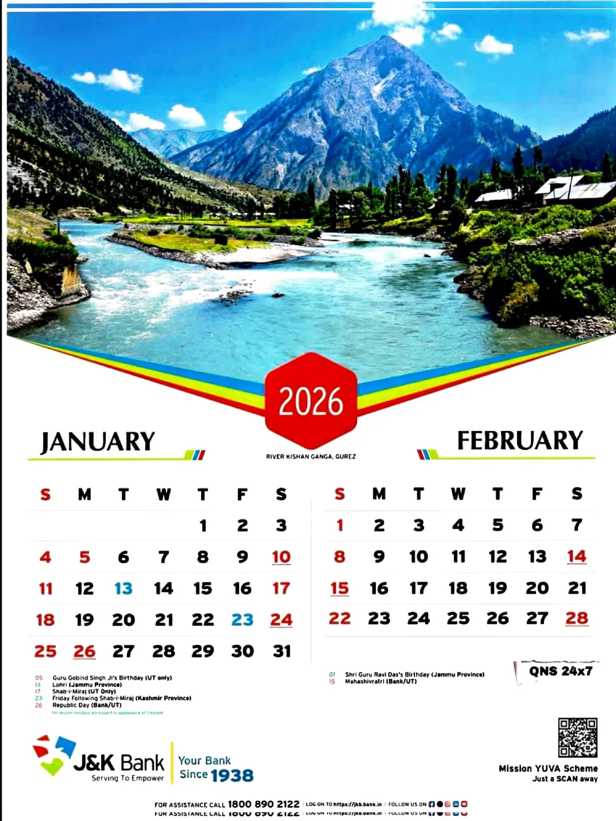 J&K Bank Calendar 2026 is a helpful guide for customers and employees of Jammu & Kashmir Bank. It shows all important bank holidays, working days, weekends, and special observances for the year 2026.