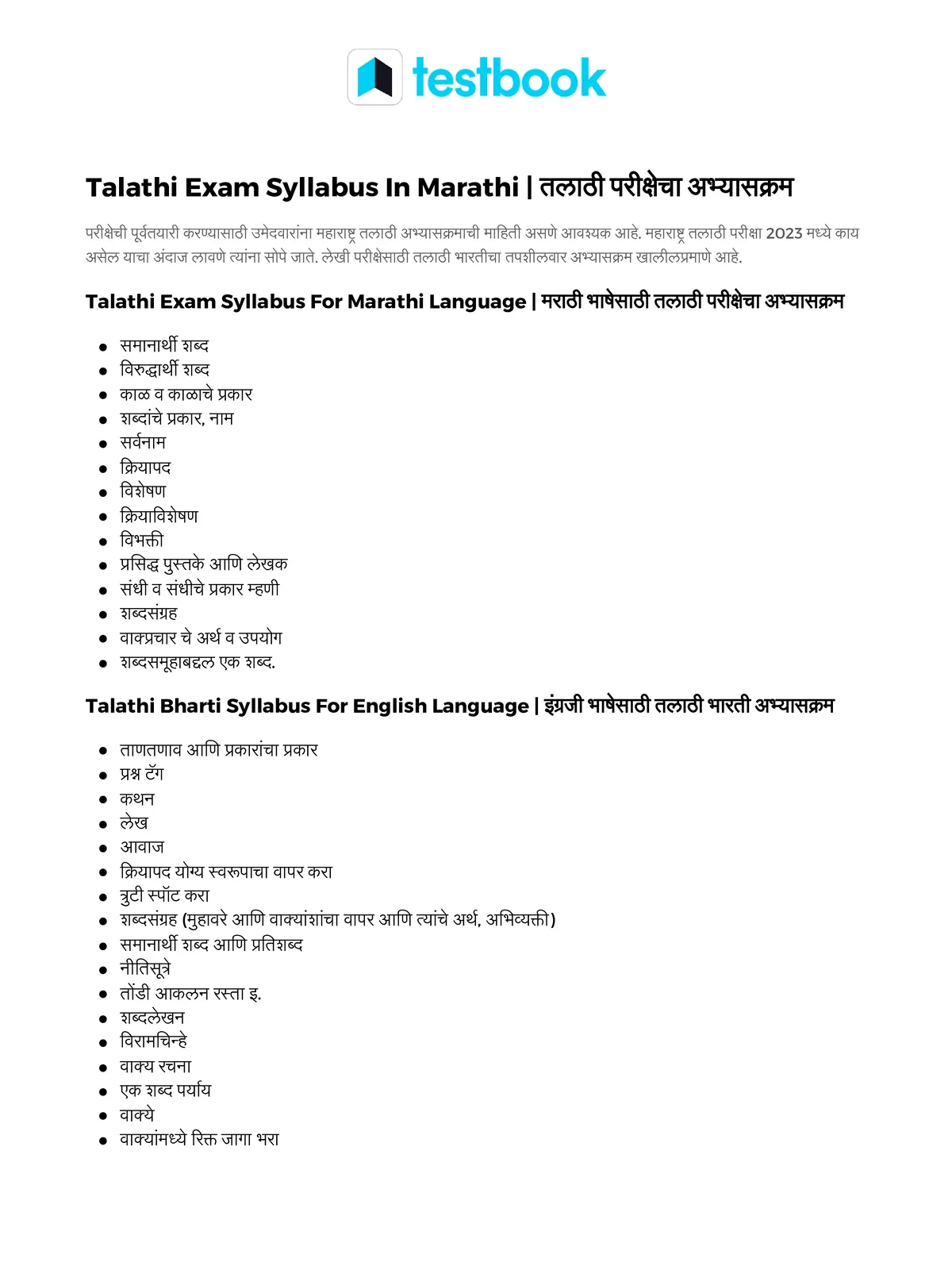 Talathi Syllabus : Marathi Language