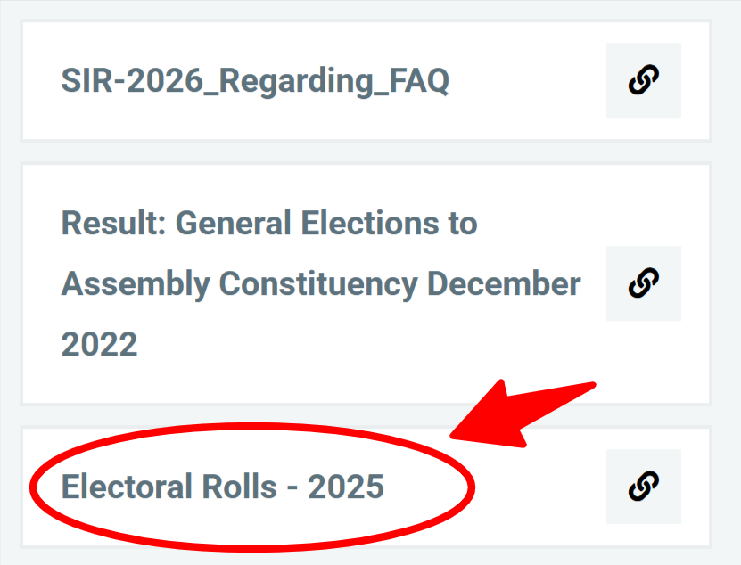 STEP 2: At the homepage, click on the “Electoral Rolls – 2025” tab present under the ‘Important links‘ section as shown below:-