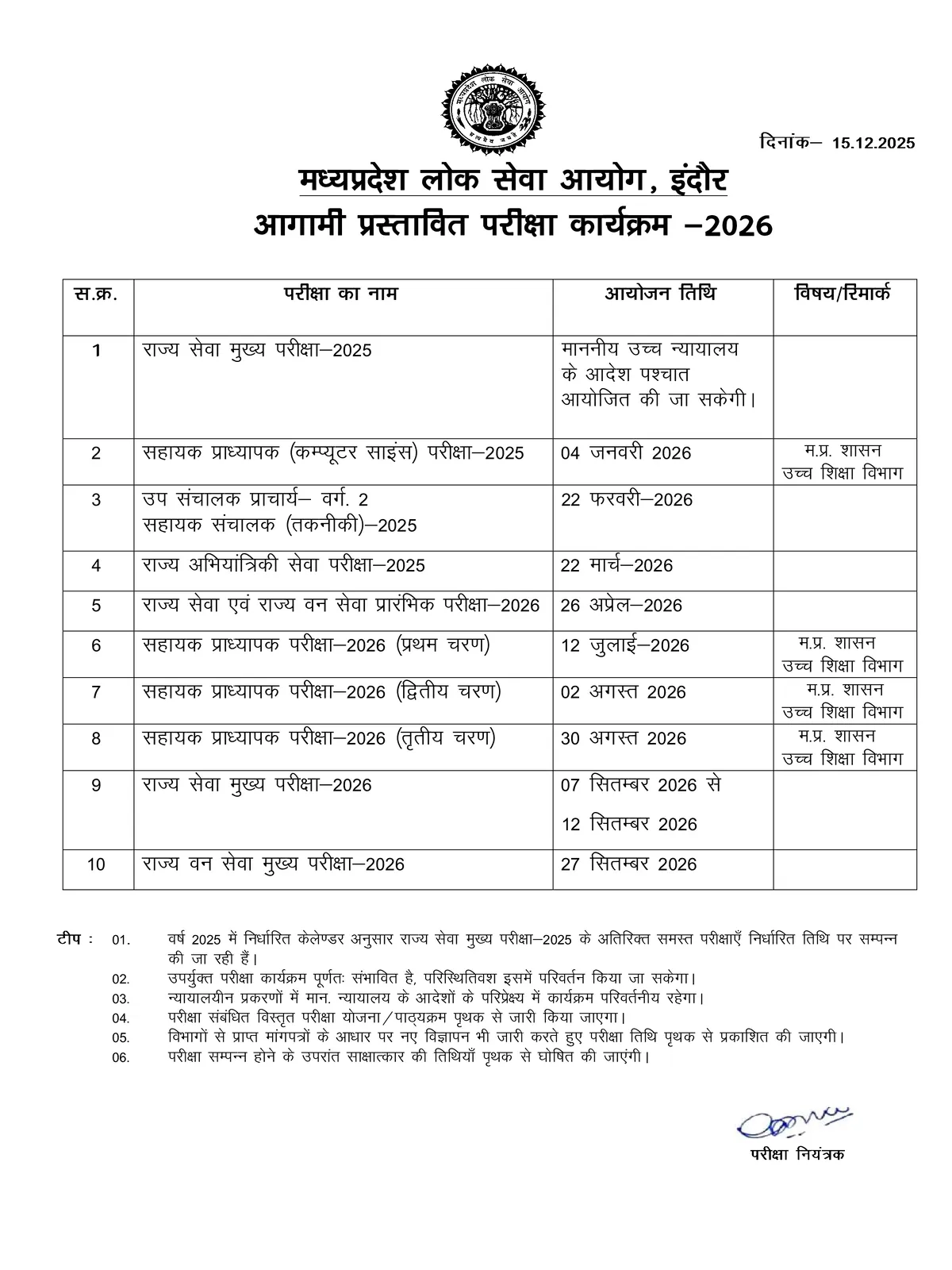 MPPSC has published the MPPSC exam calendar 2026 notice on its official website in the PDF format. Candidates must download the calendar and align their preparation according to the dates that have been provided.