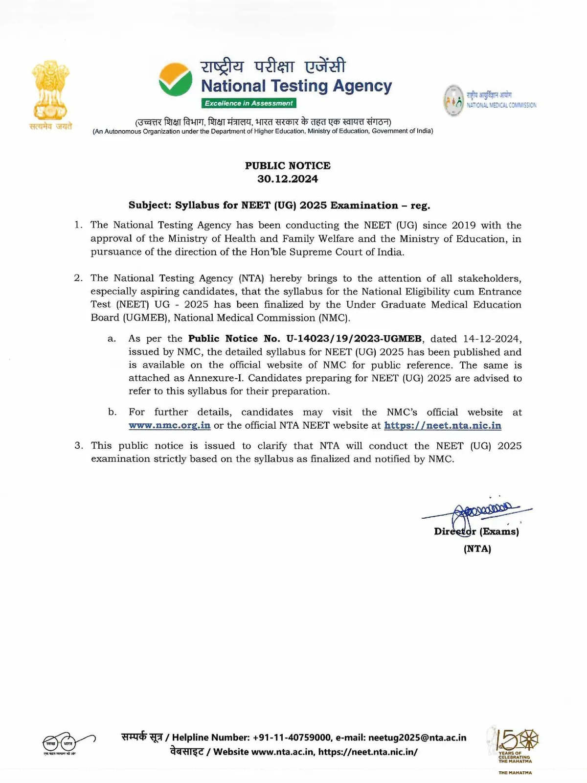 The National Testing Agency (NTA) officially released the NEET Syllabus 2025 PDF by NTA from the official website. NEET 2025 Aspirants should note these changes carefully to align their study strategies accordingly.
