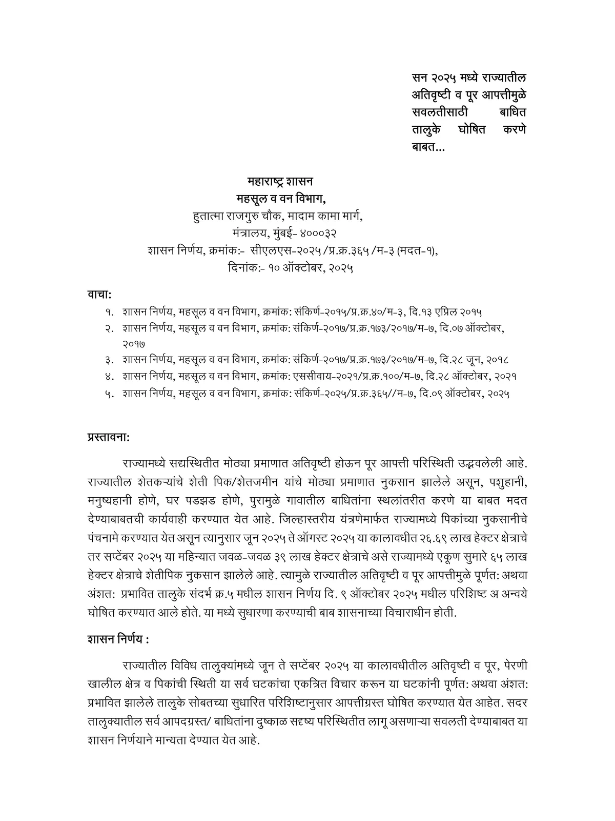Nuksan Bharpai List 2025 Maharashtra - Summary
