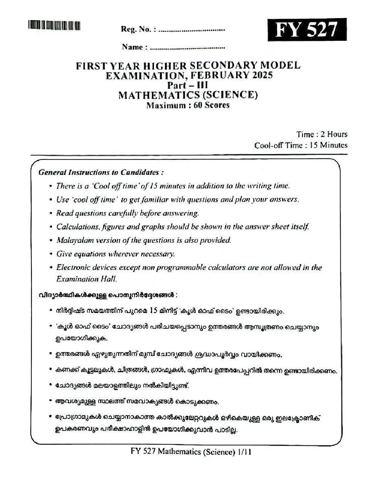 Plus One Model Exam Question Paper 2025 for Maths helps students understand the type of questions that may come in the final exam. It gives a clear idea of the exam pattern, important chapters, and the level of difficulty. By practising this model paper, students can improve their speed, accuracy, and confidence before the real exam.