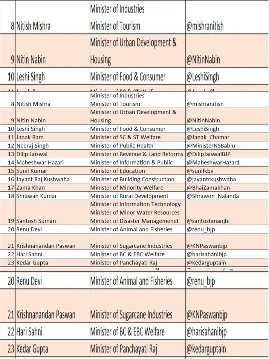 Bihar Mantrimandal 2025 List