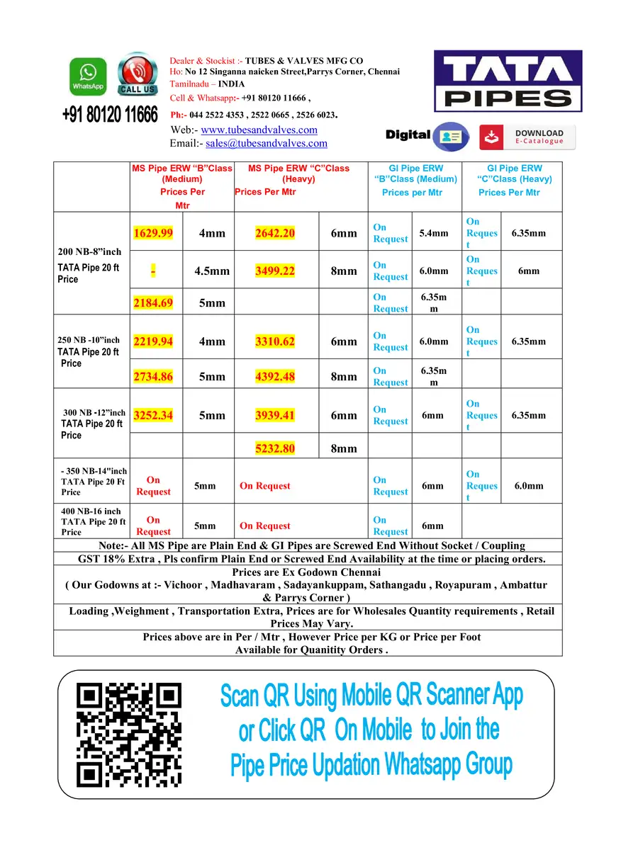 Tata GI Pipe New GST Price List 2025