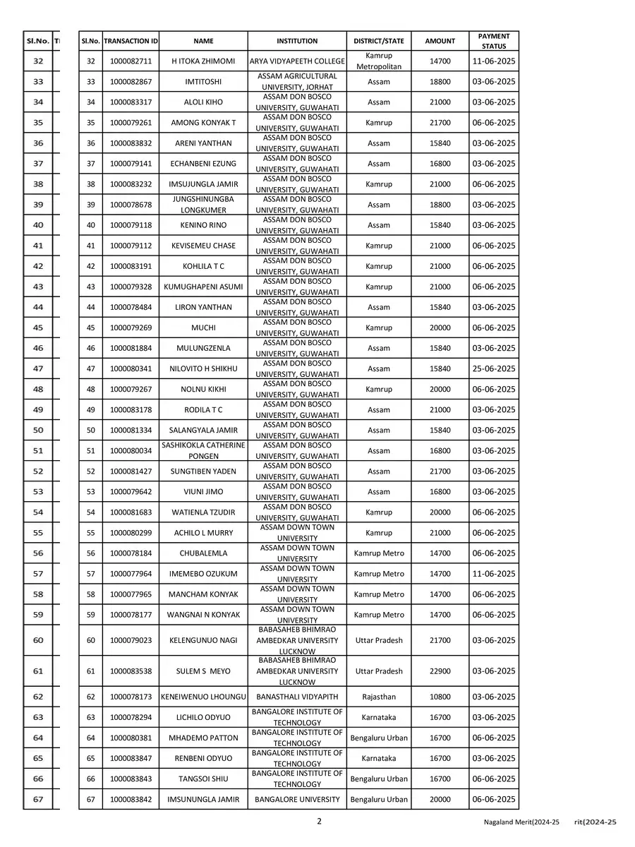 Nagaland Scholarship 2025 Beneficiary List