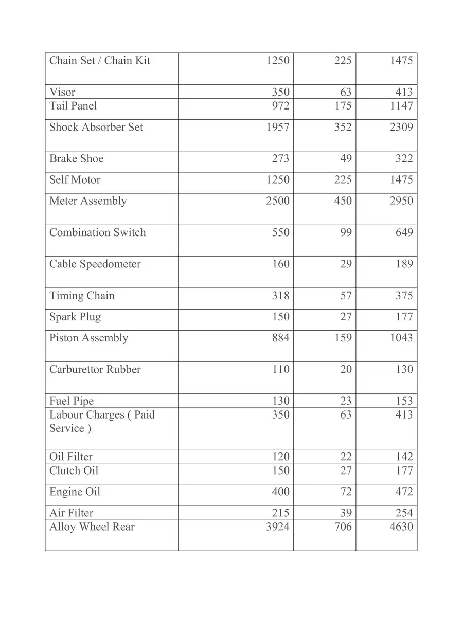Bajaj Pulsar 150CC Spare Parts New GST Price List 2026