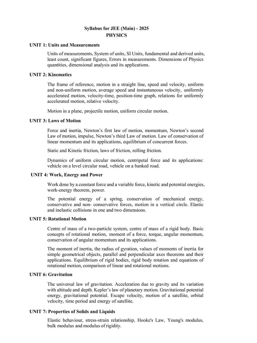 JEE Mains Syllabus 2026 by NTA