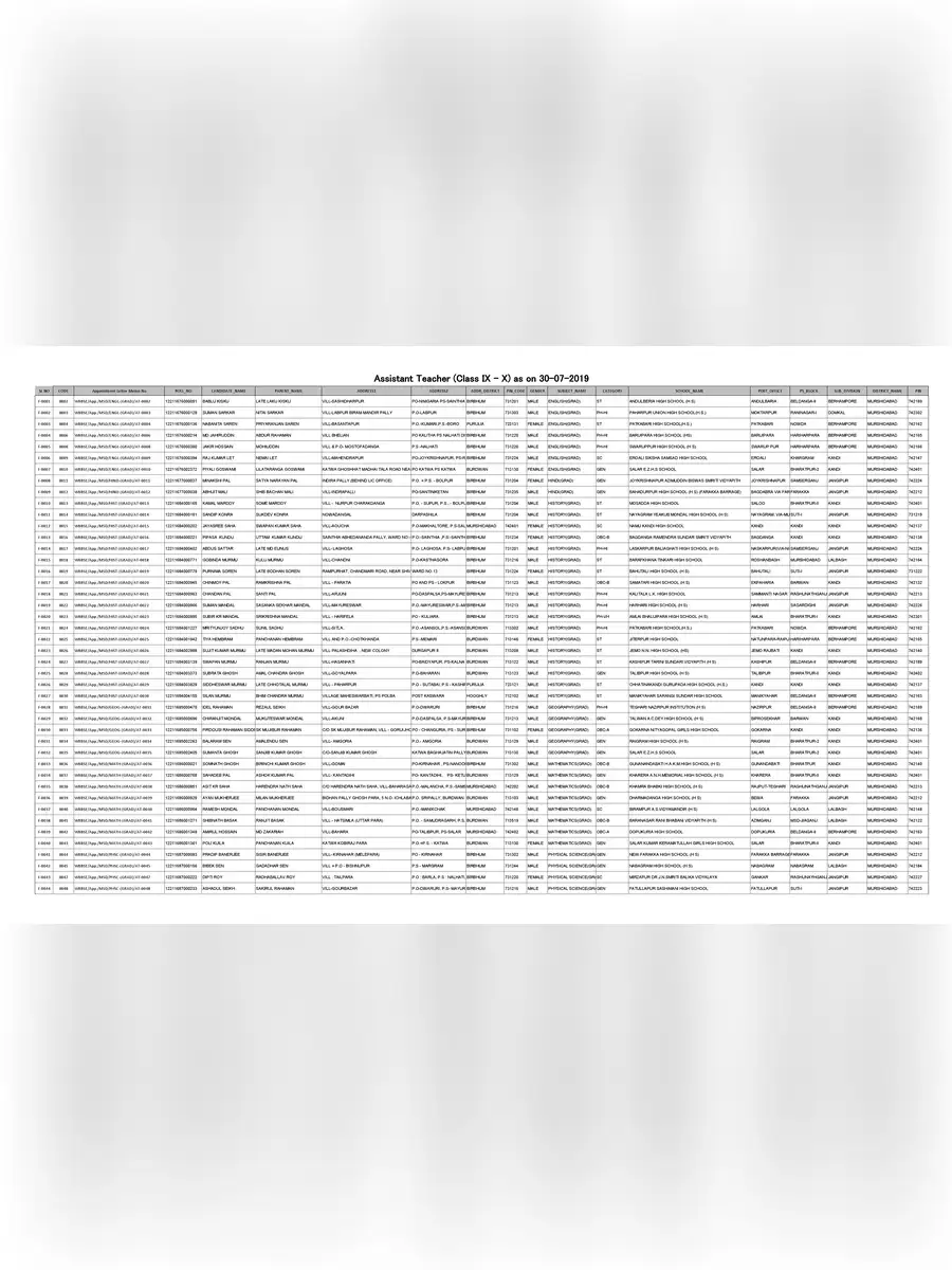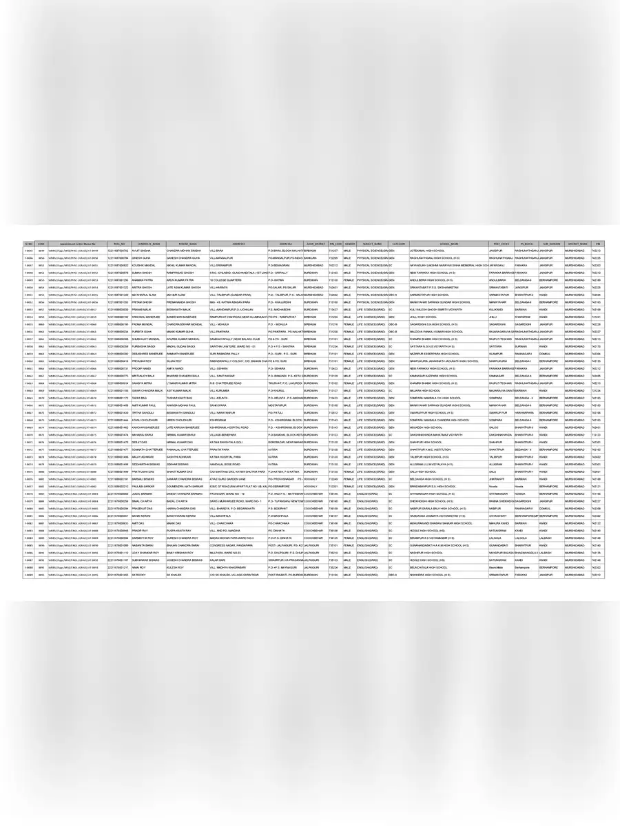List of Cancelled Teachers in West Bengal