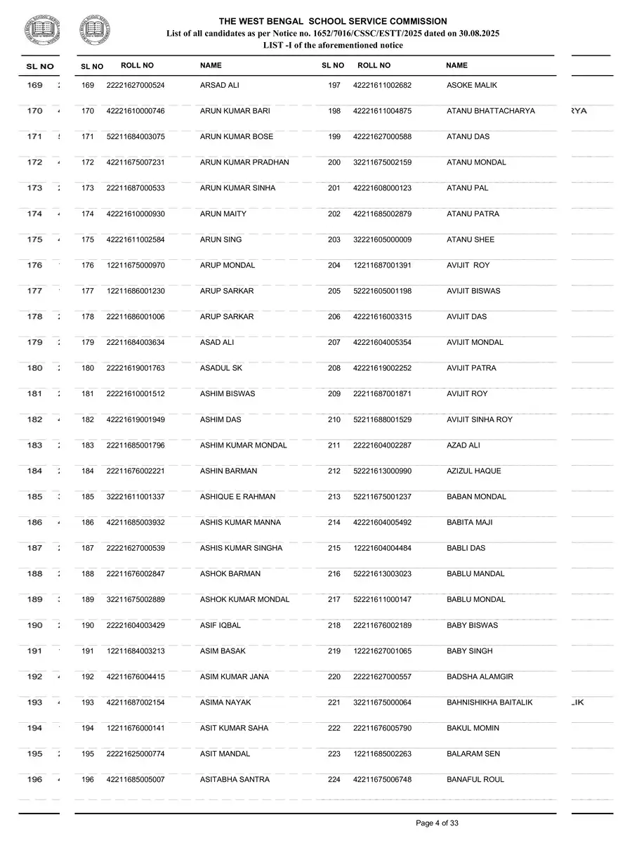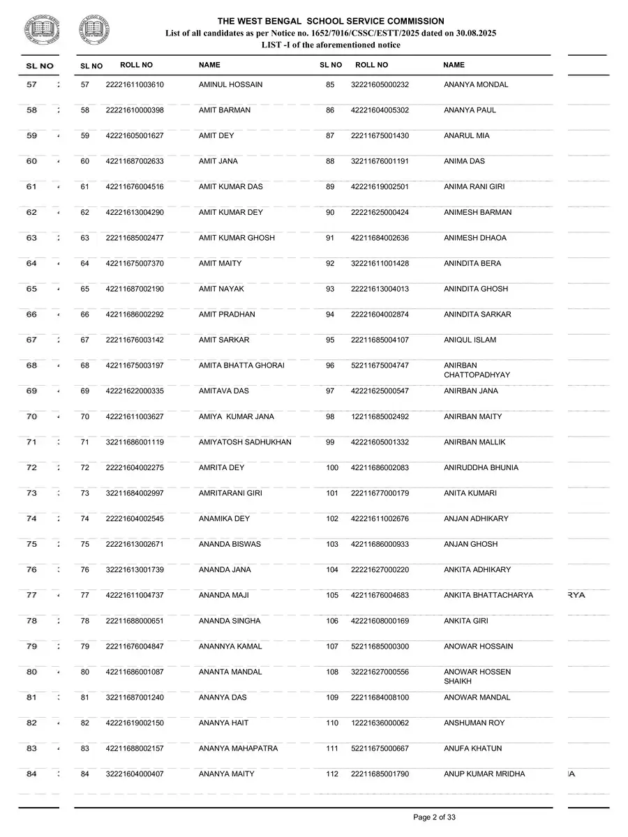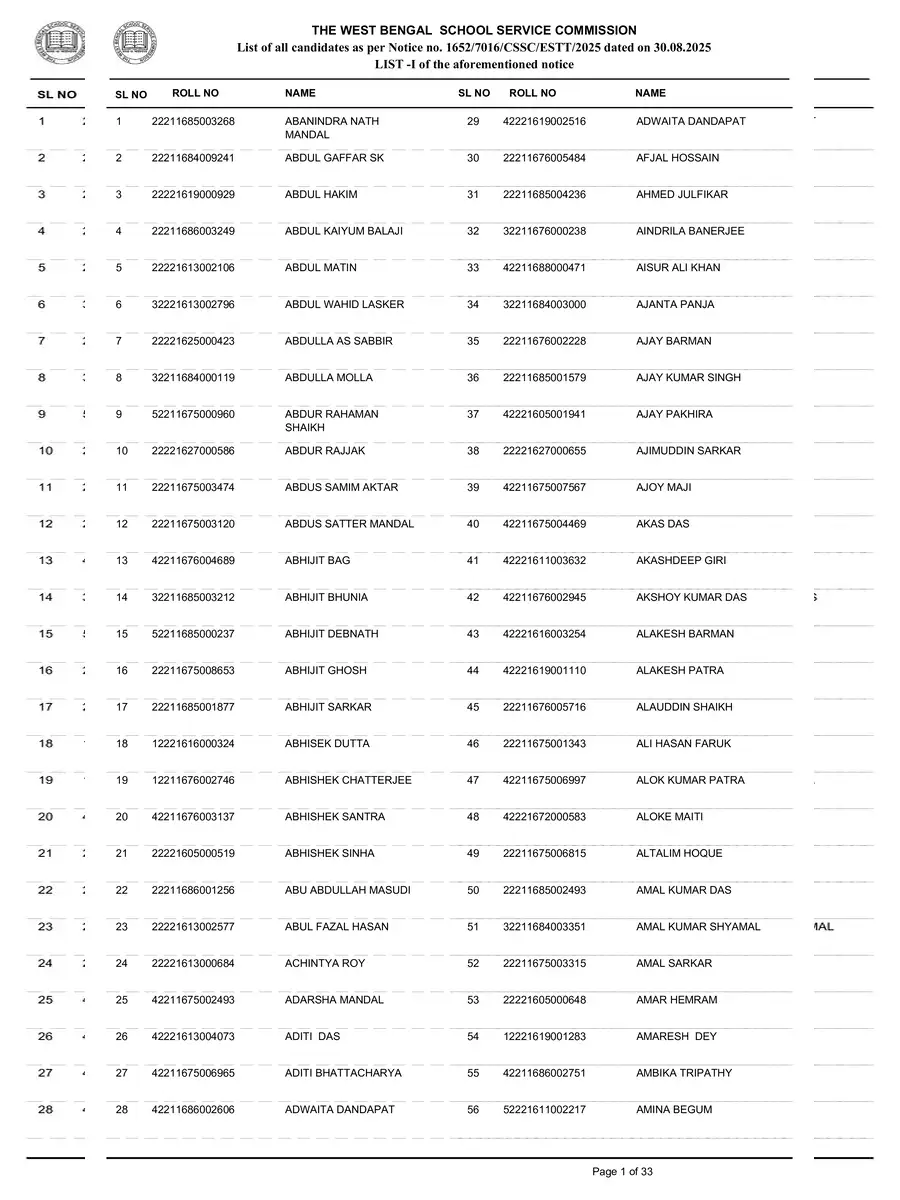 SSC Tented Candidate List