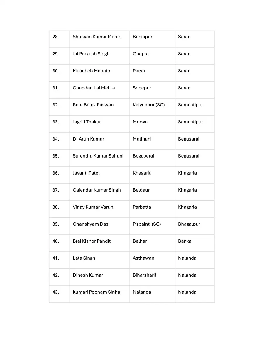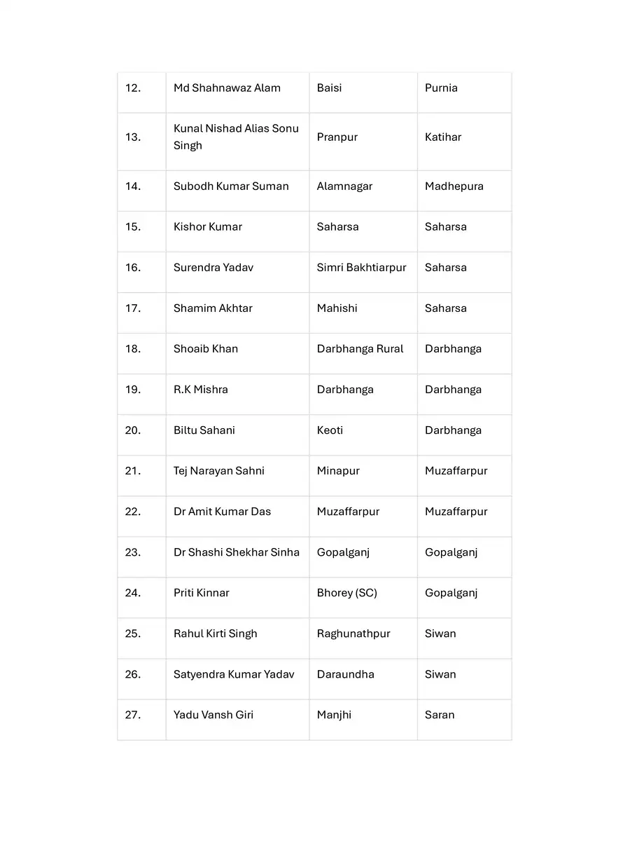 Jan Suraaj Party Candidates List 2025