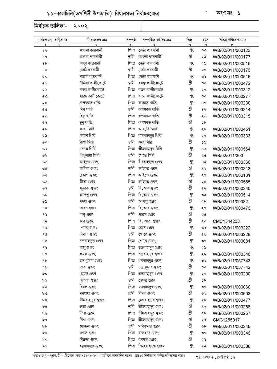 Old SIR (Voter) List 2002 West Bengal