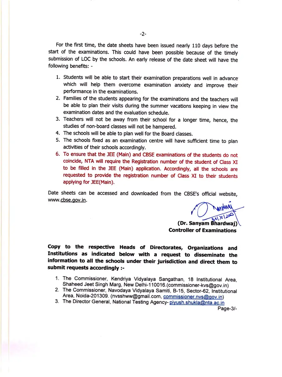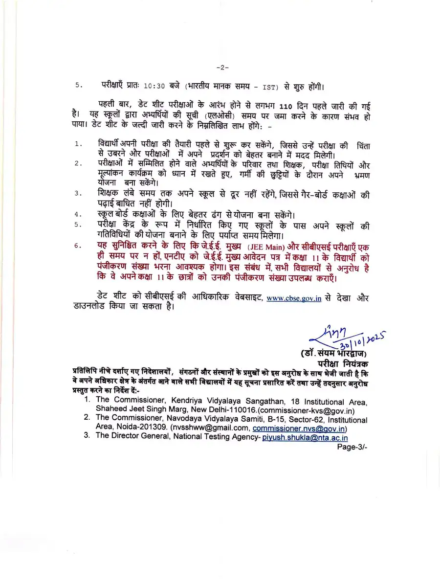 CBSE Date Sheet 2026 Class 12