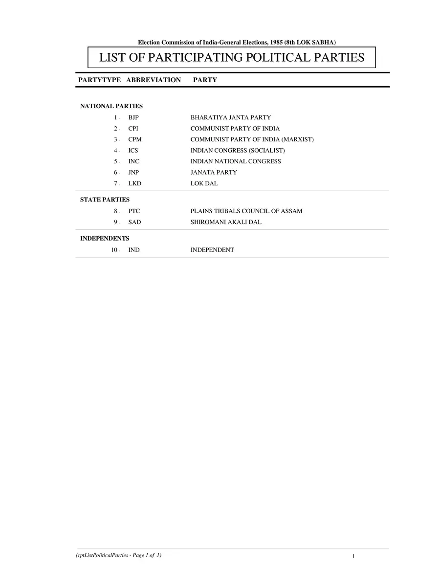 Voter List 1985 West Bengal