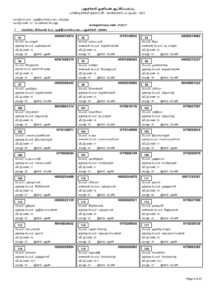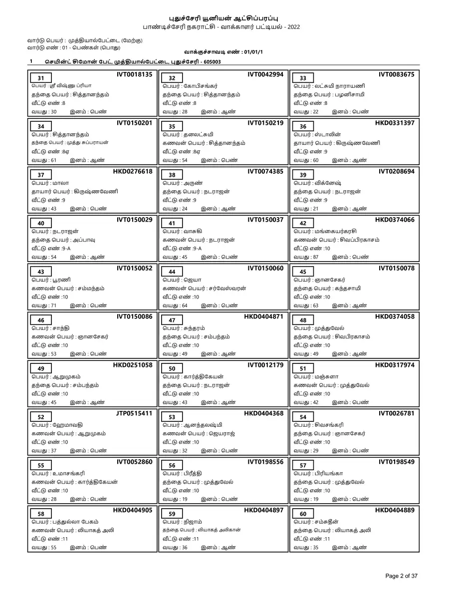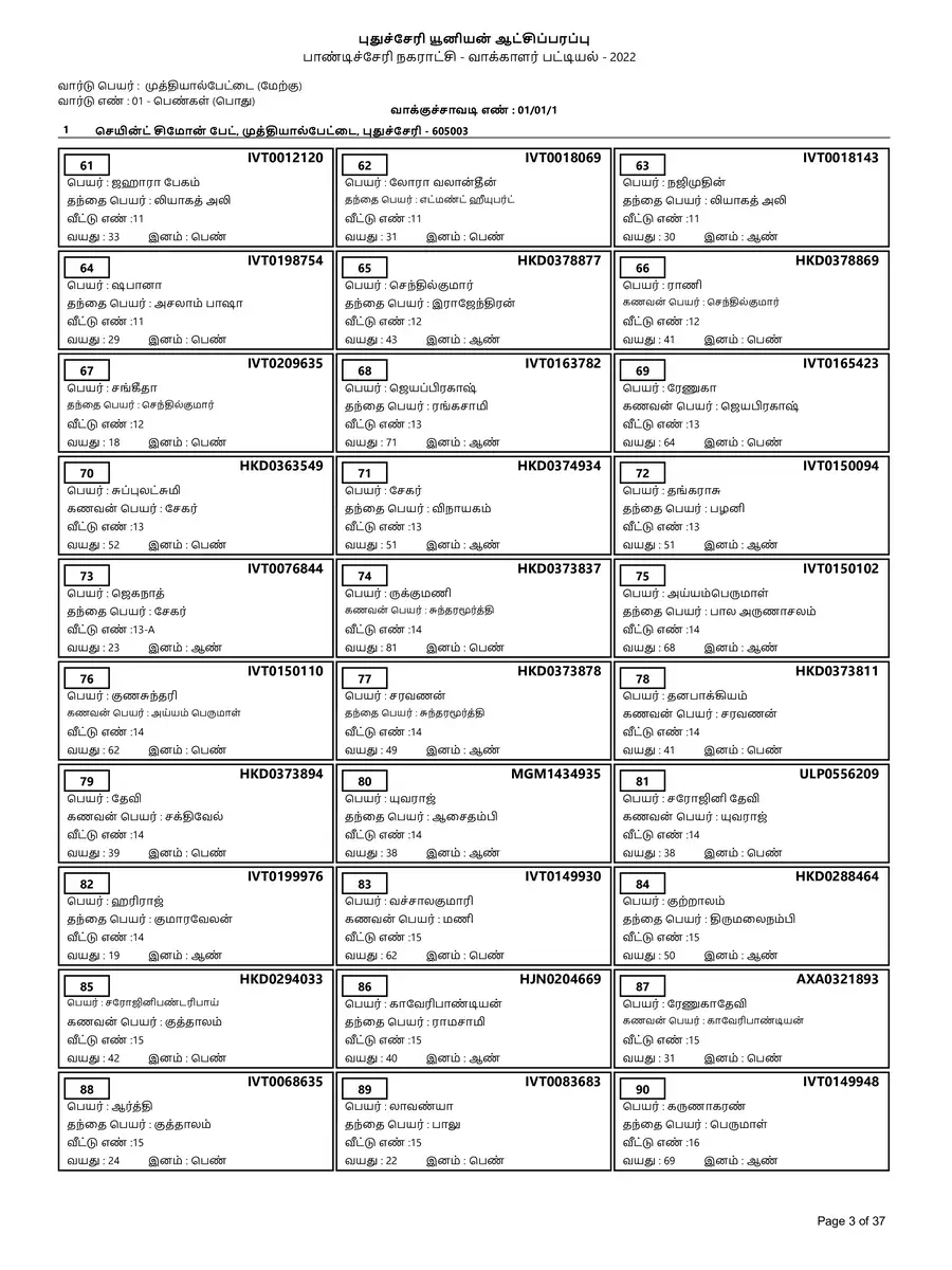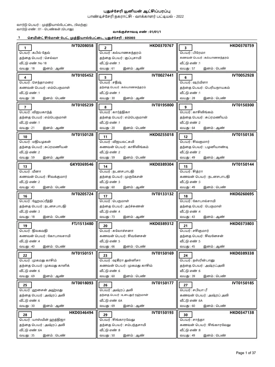 Puducherry Voter List 2022