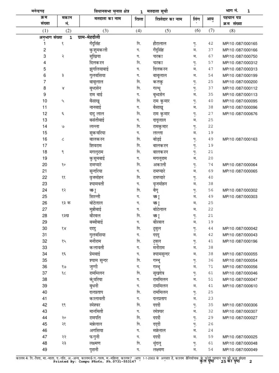 CG Voter List 2003 – Chhattisgarh Old SIR Voter List