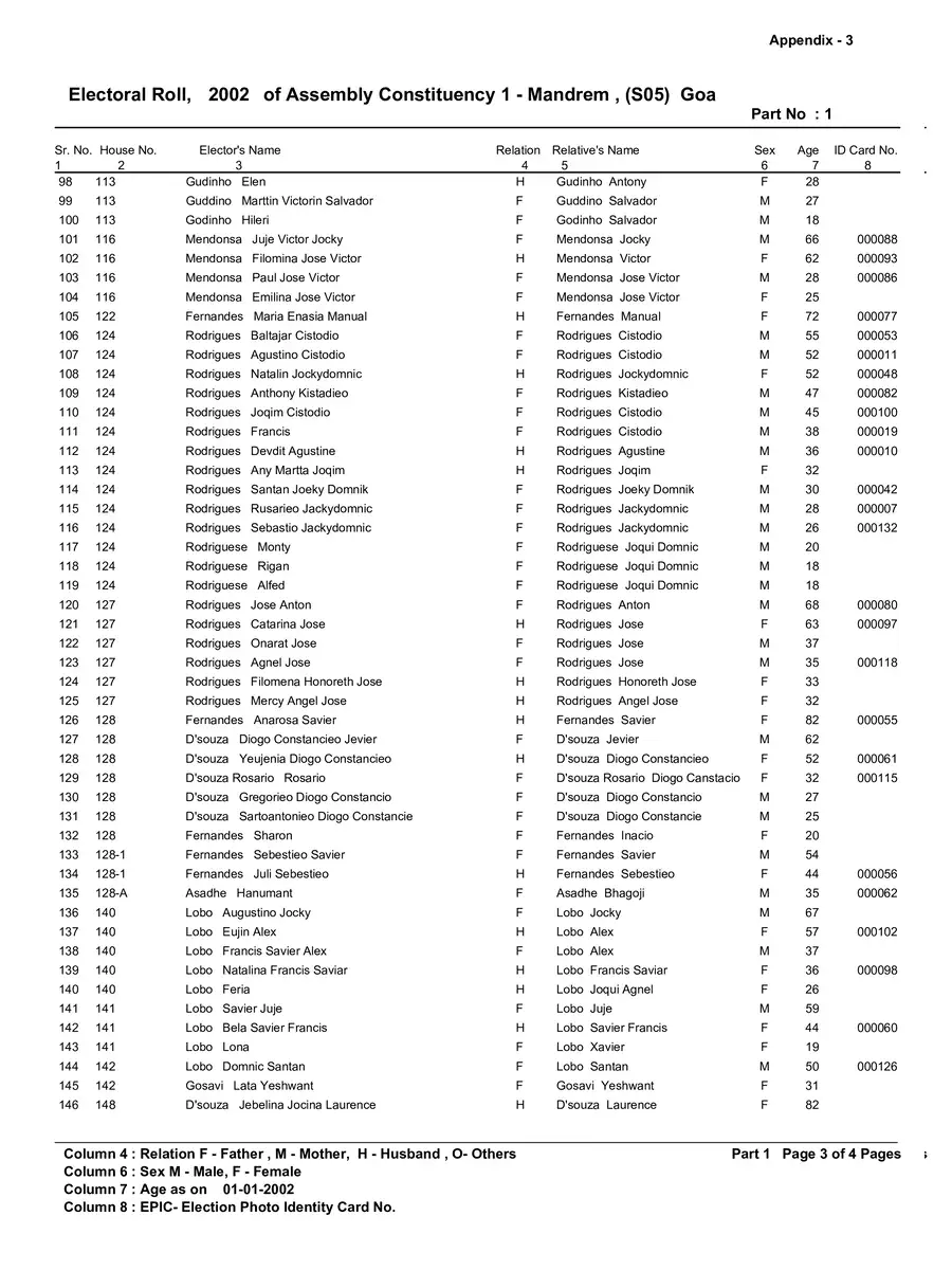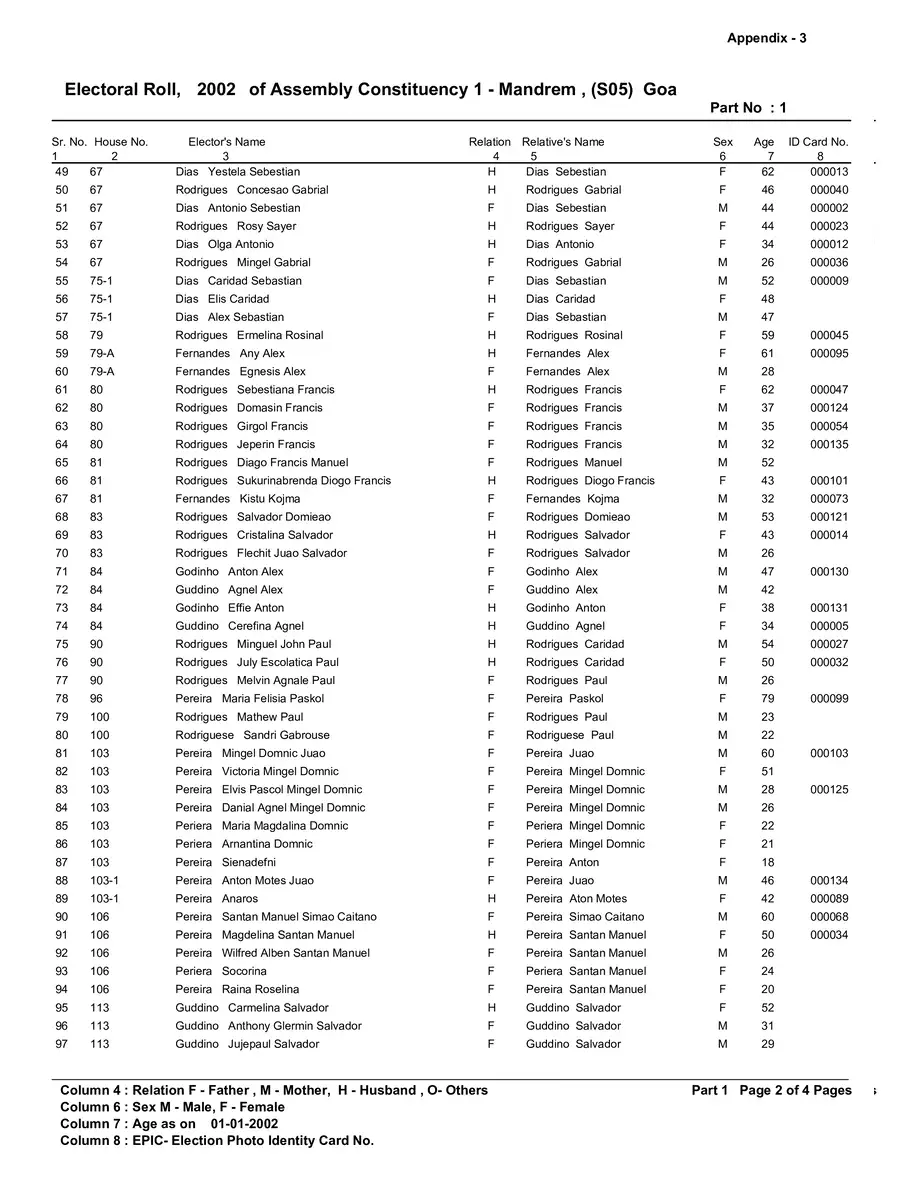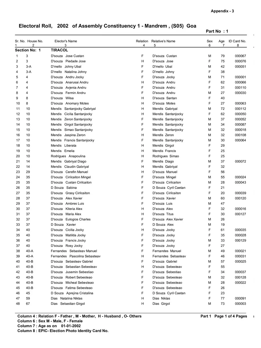 Voter List 2002 Goa