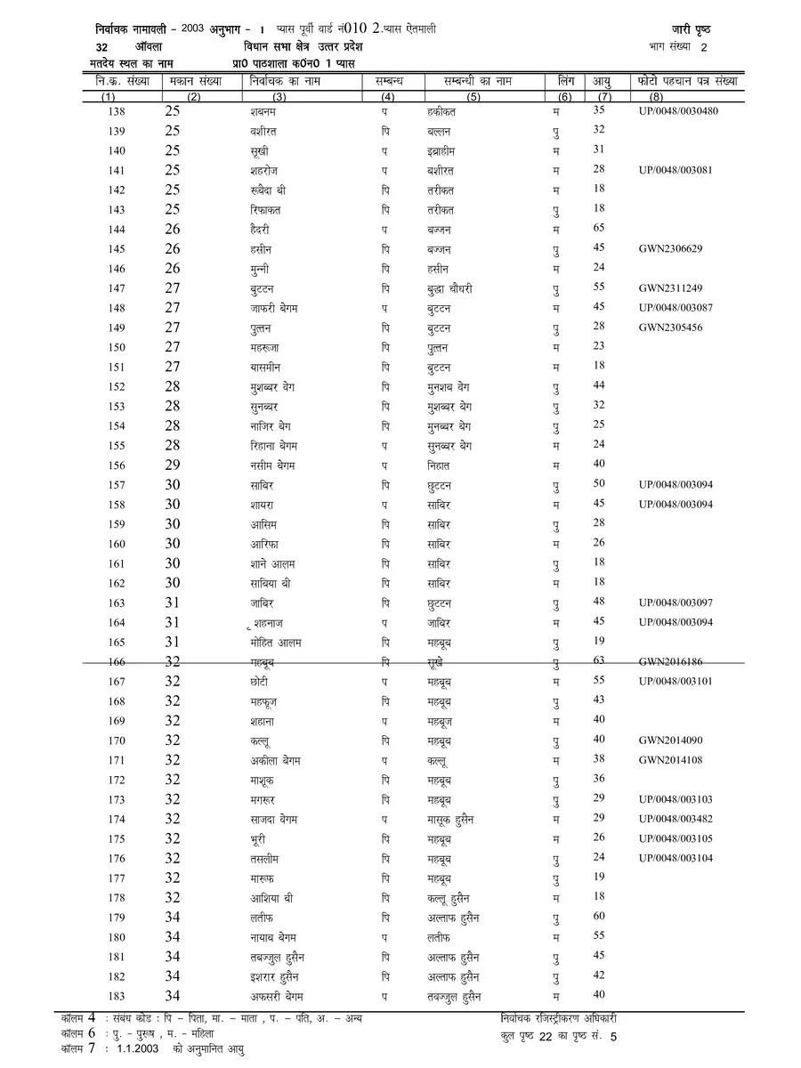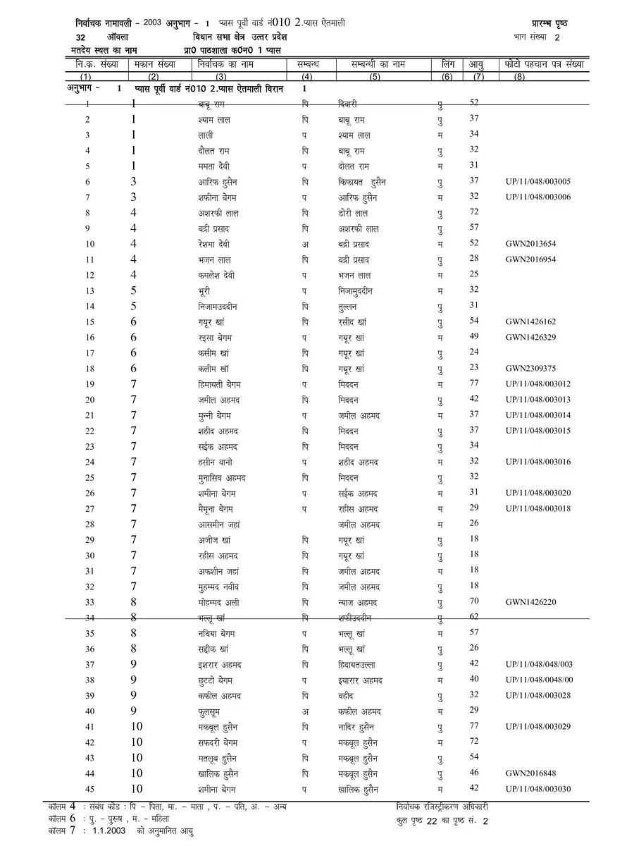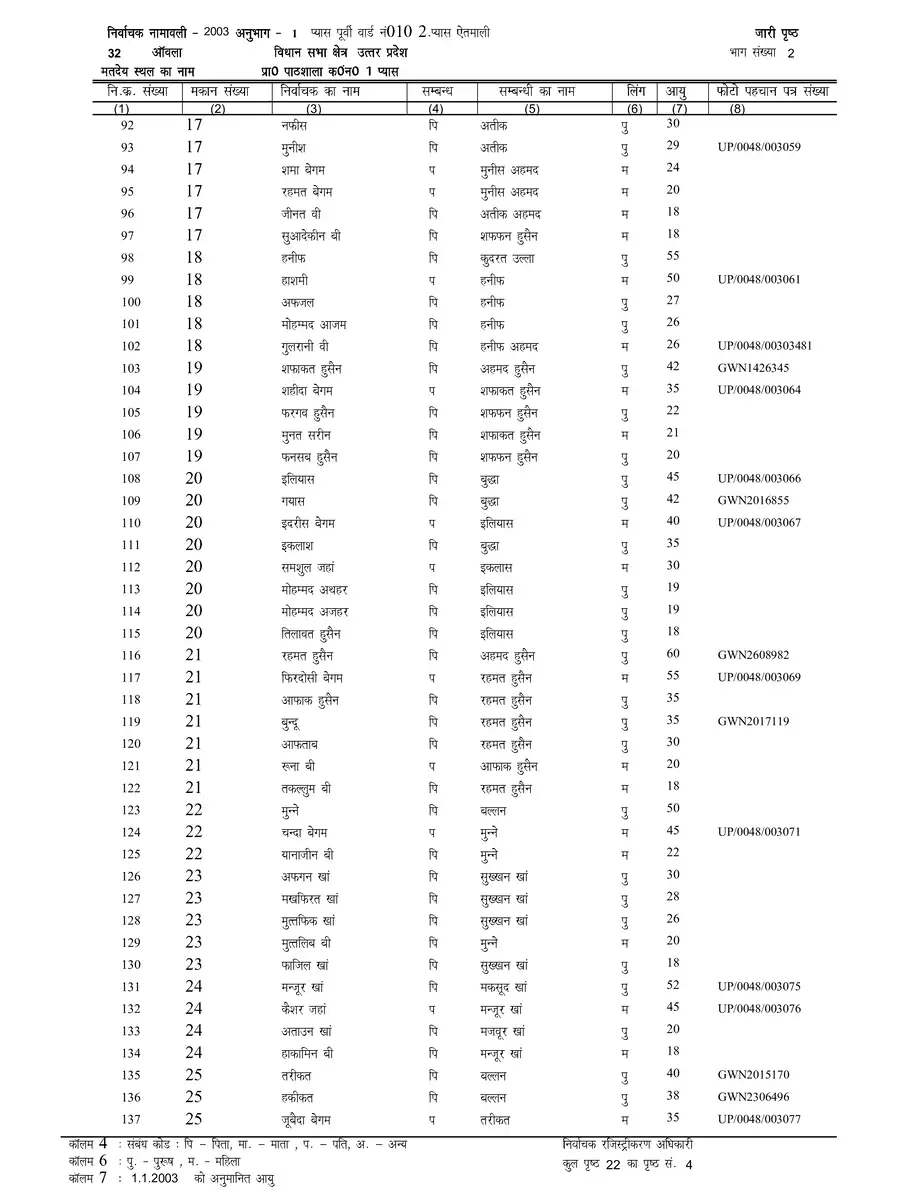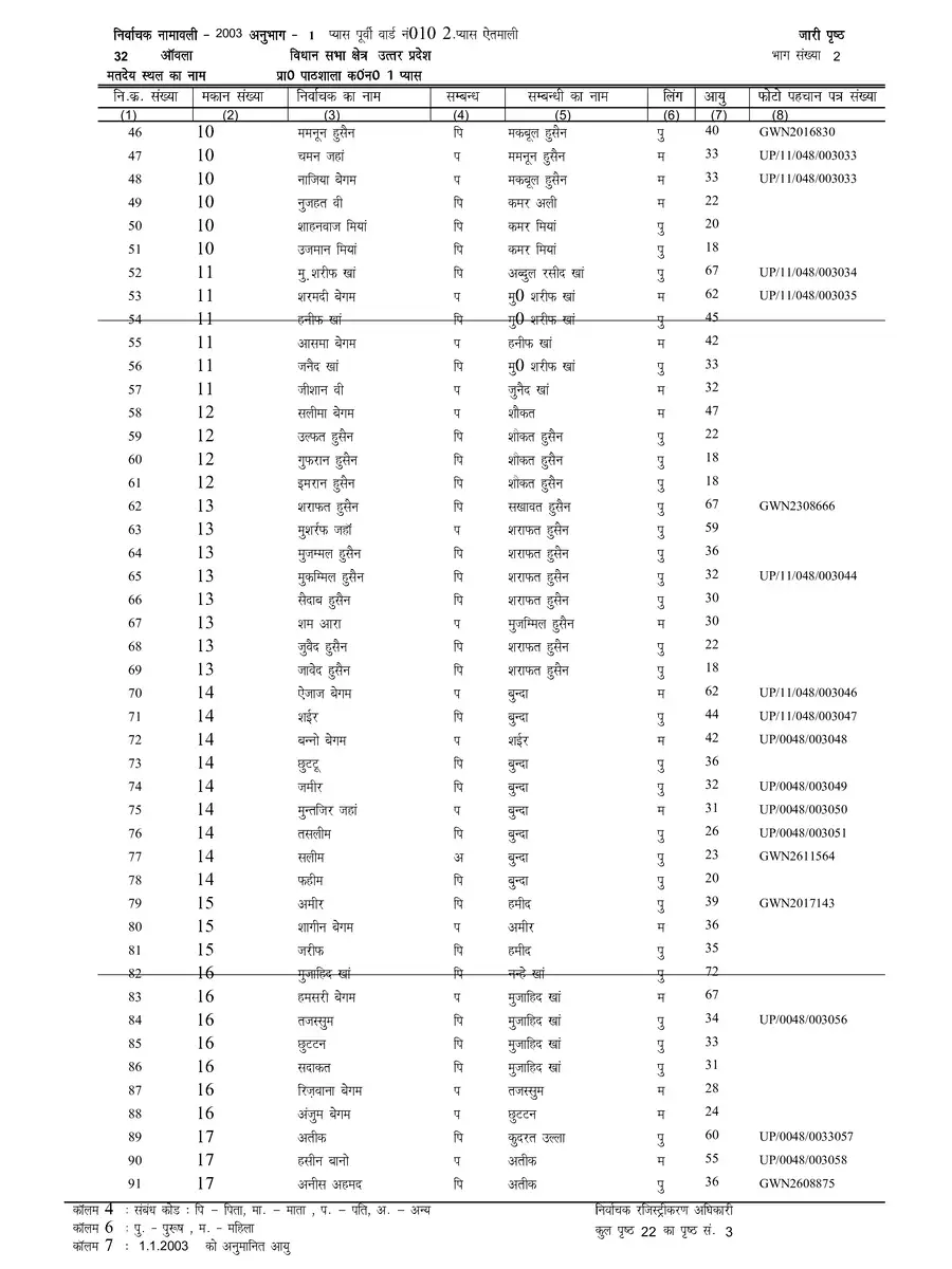 Voter List 2003 Uttar Pradesh Bareilly