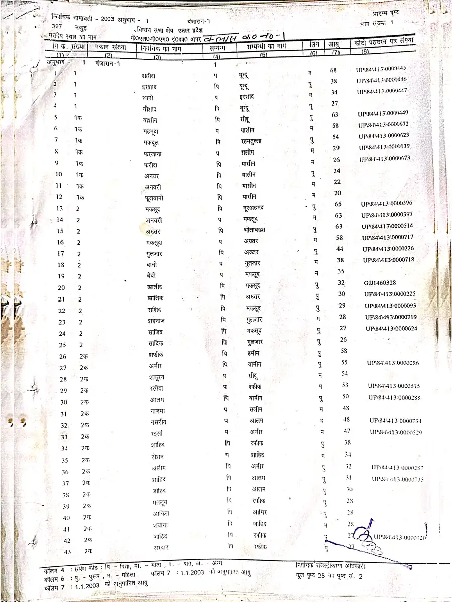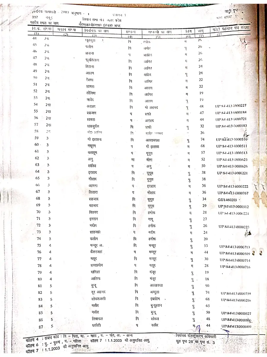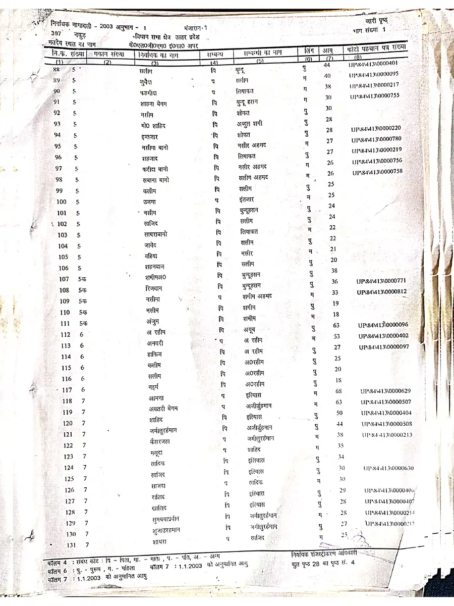 Voter List 2003 Uttar Pradesh Saharanpur