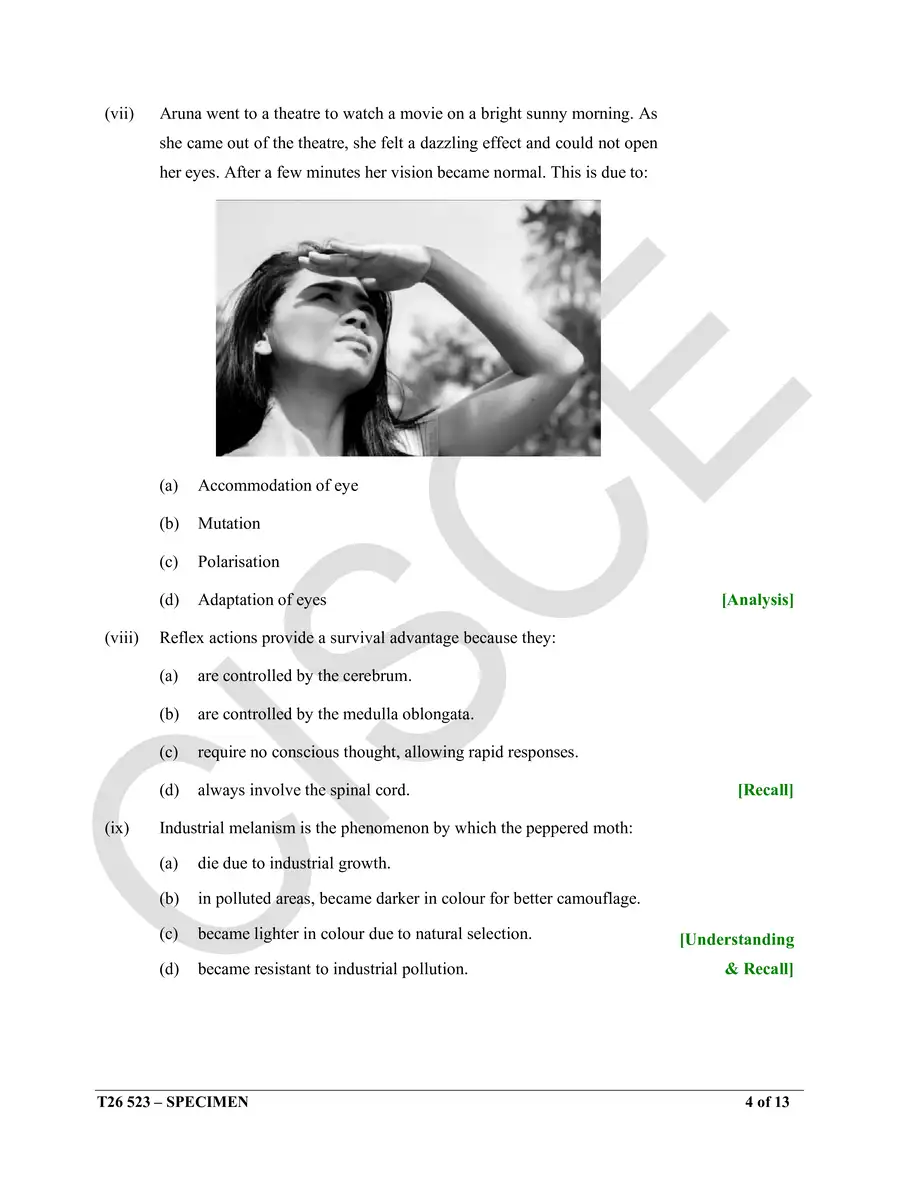ICSE Class 10 Biology Specimen Question Paper 2026