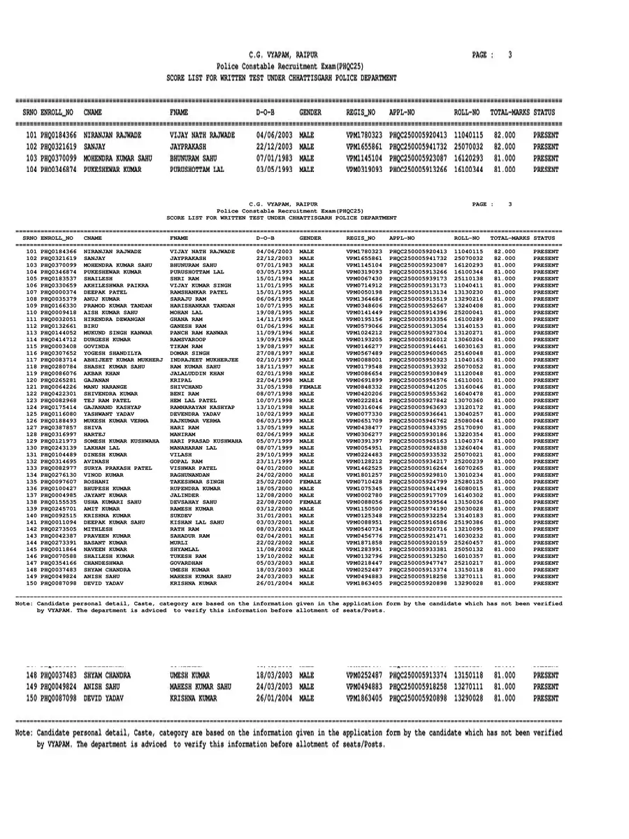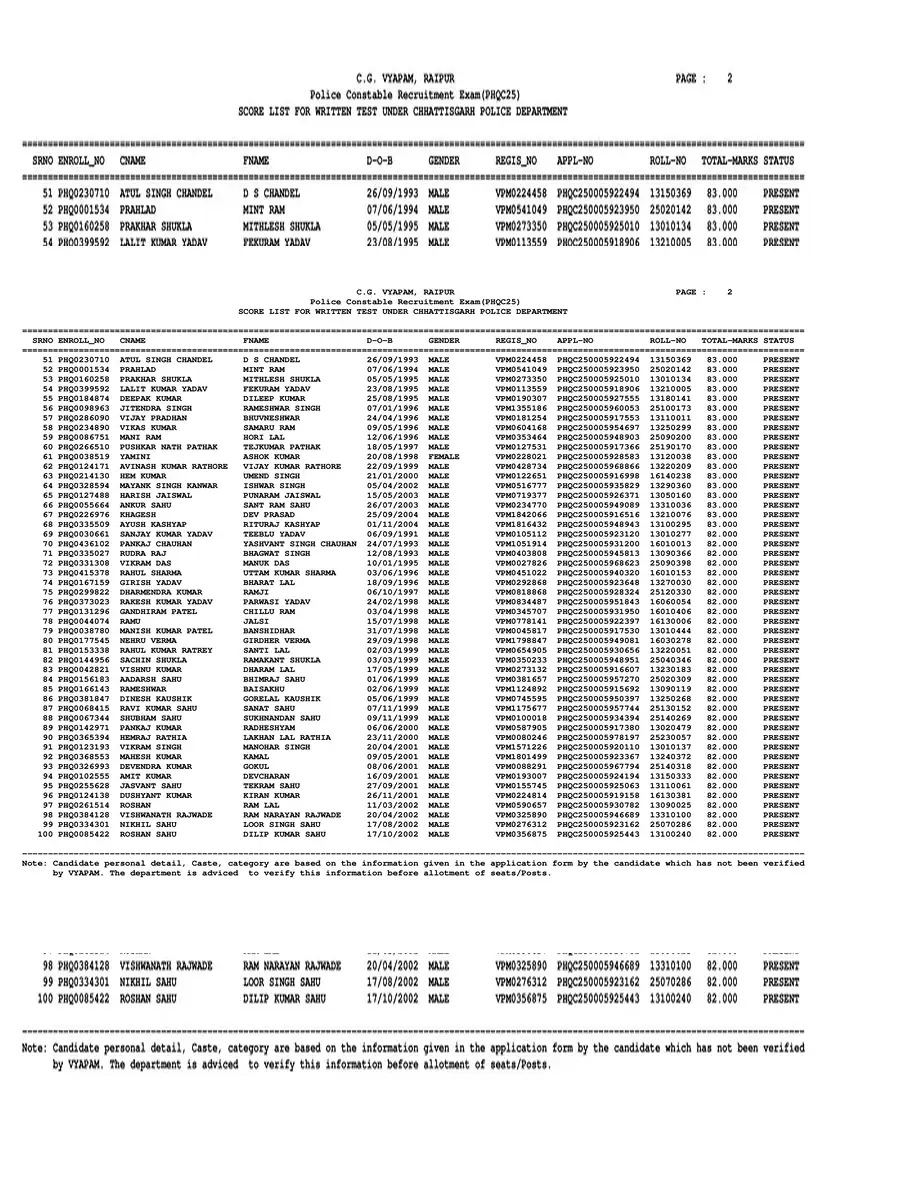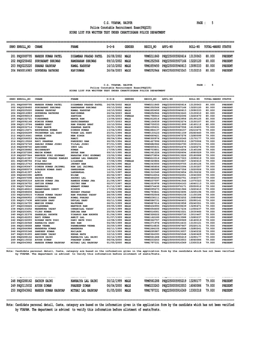 CG Police Result 2025