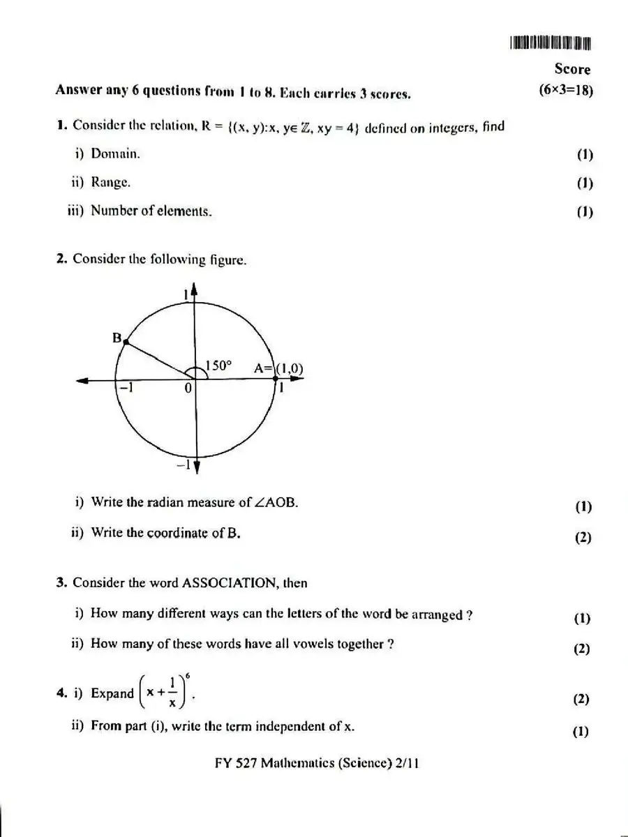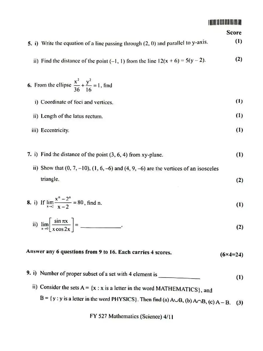 Plus One Model Exam Question paper 2025 Maths