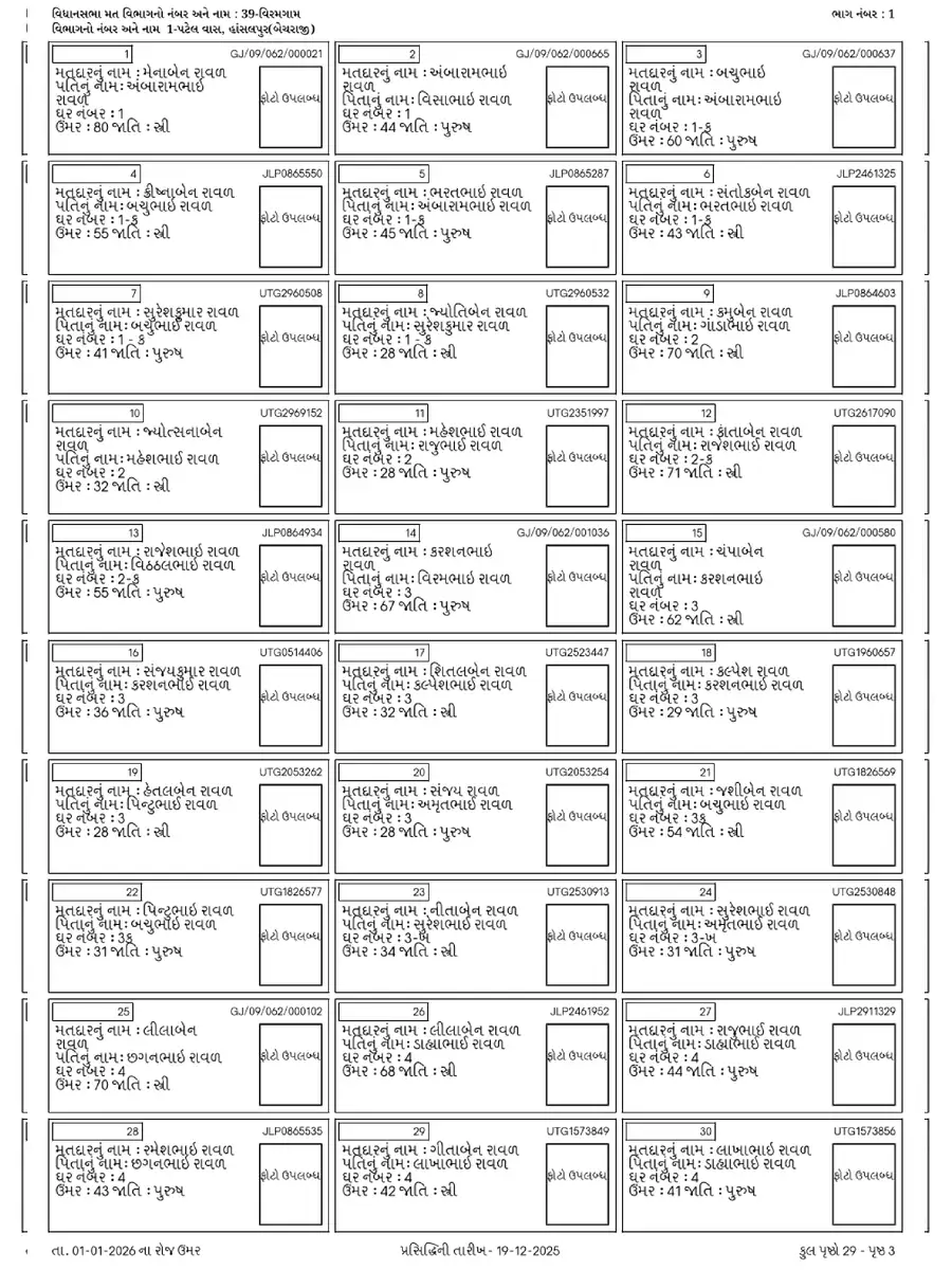 Gujarat SIR 2026 Draft Voter List