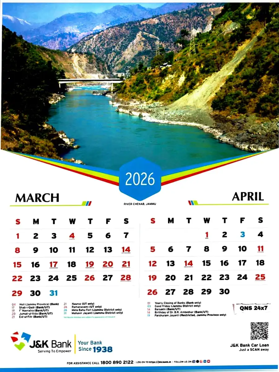 Jk Bank Calendar 2026