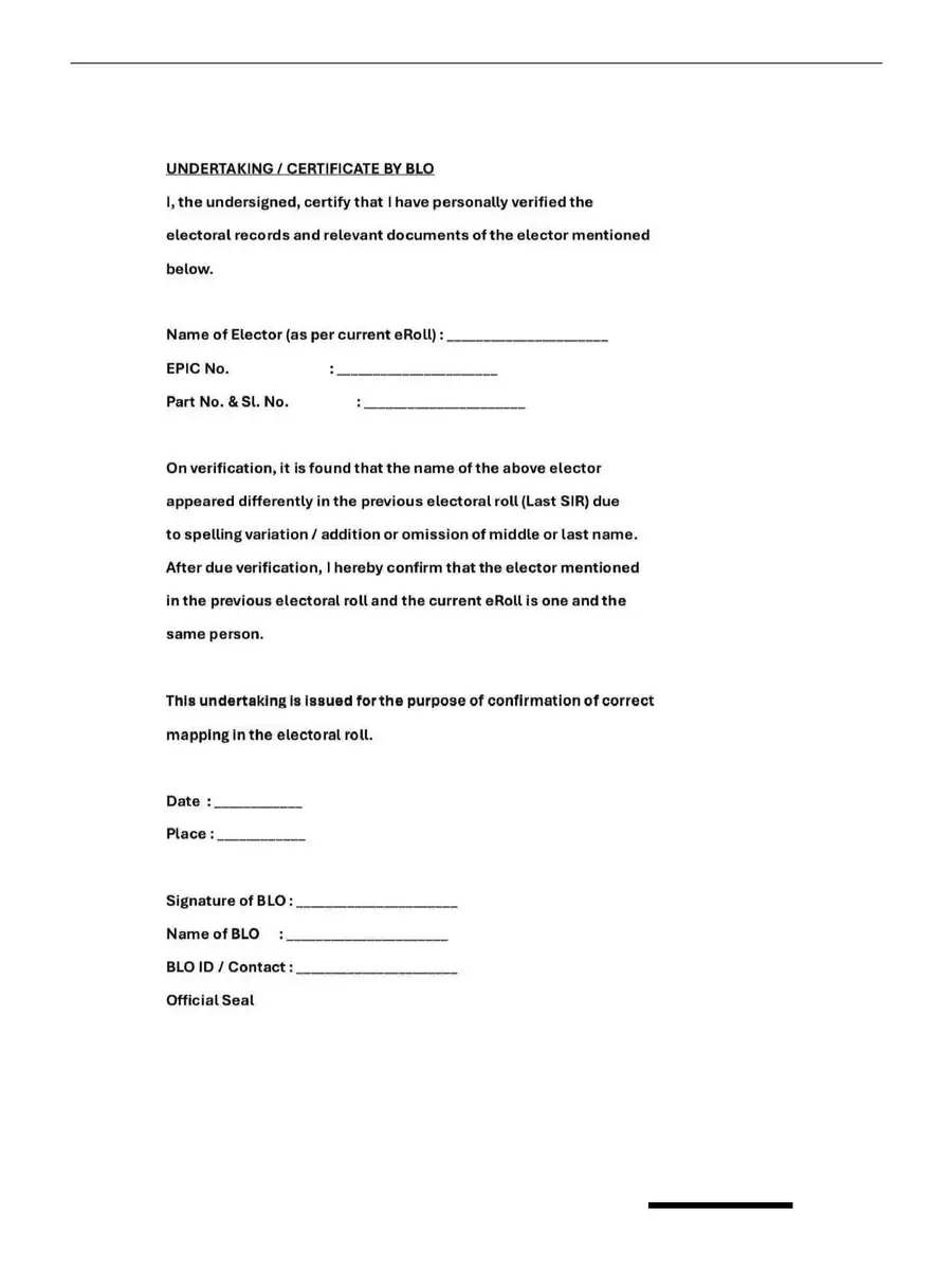 BLO Undertaking Form