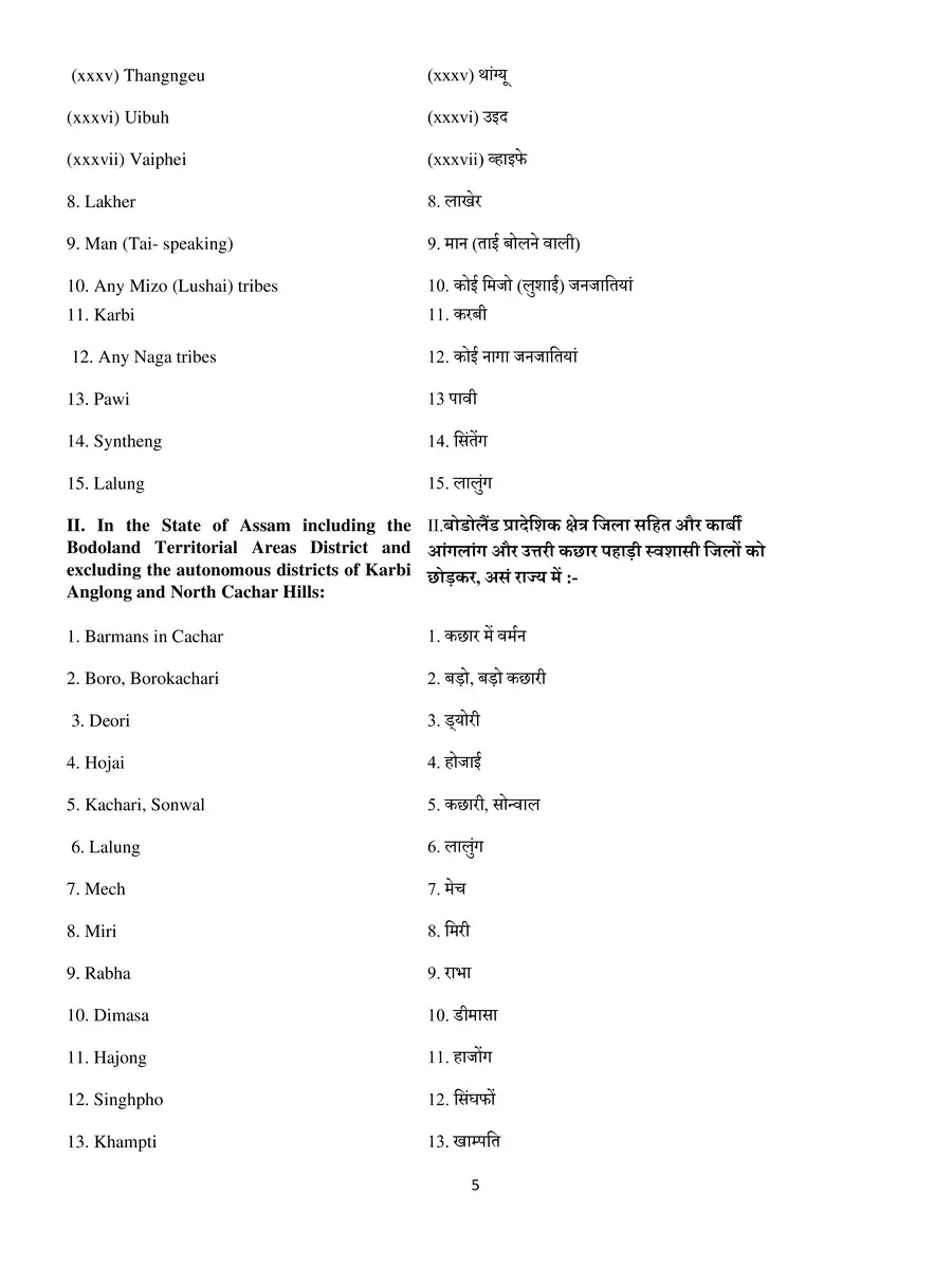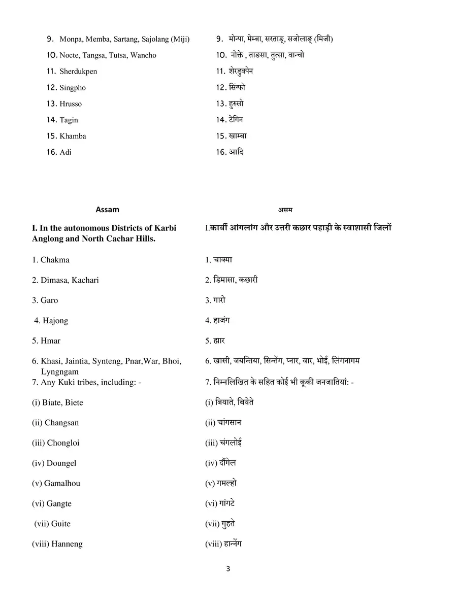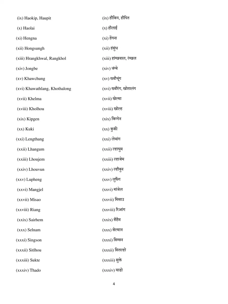 Central List with Serial Number of Caste