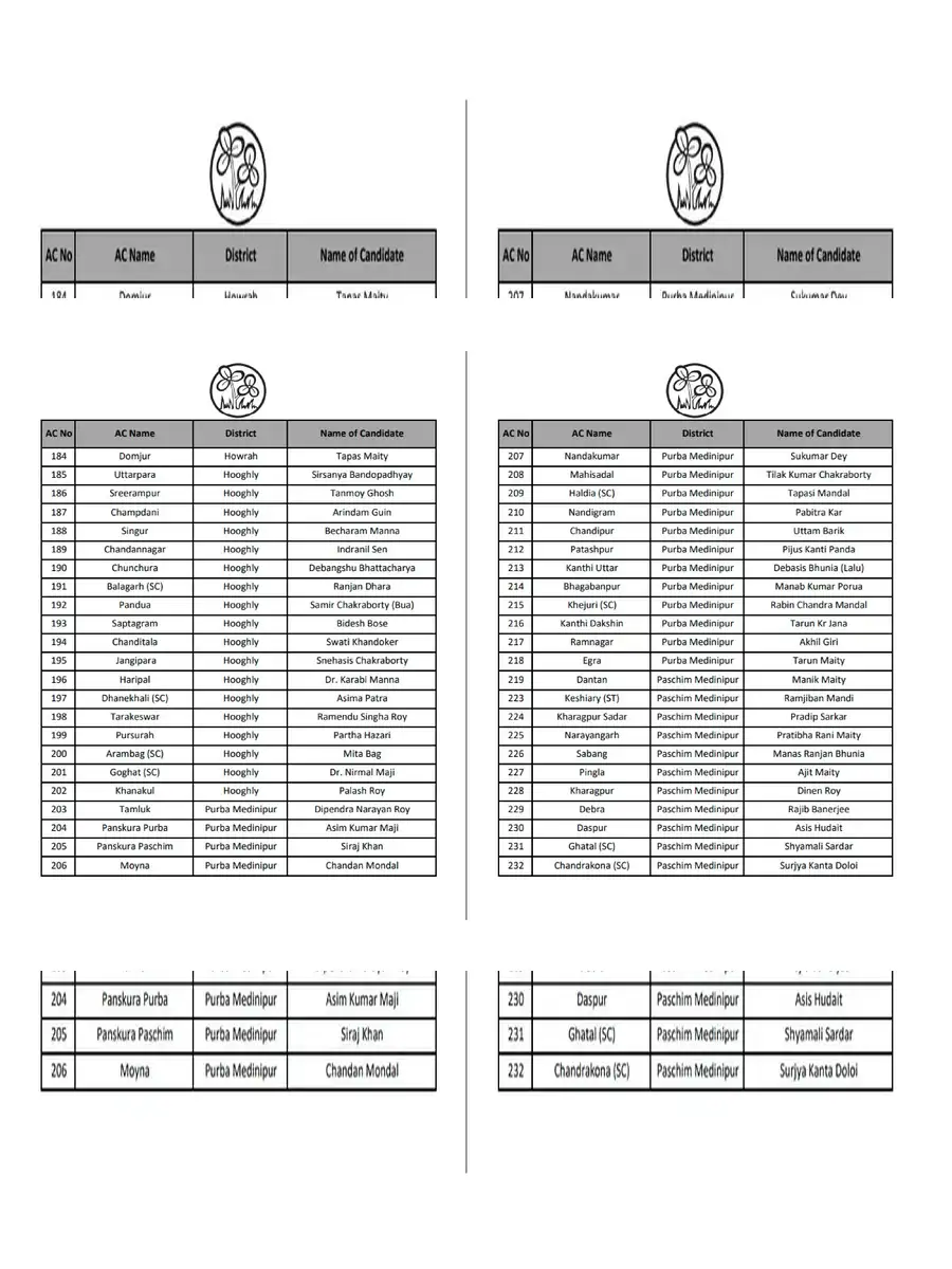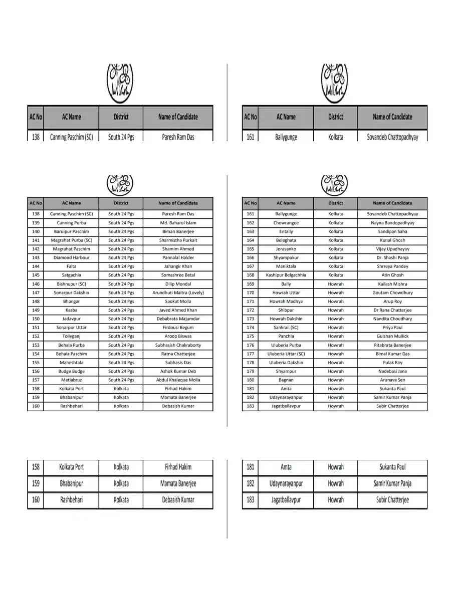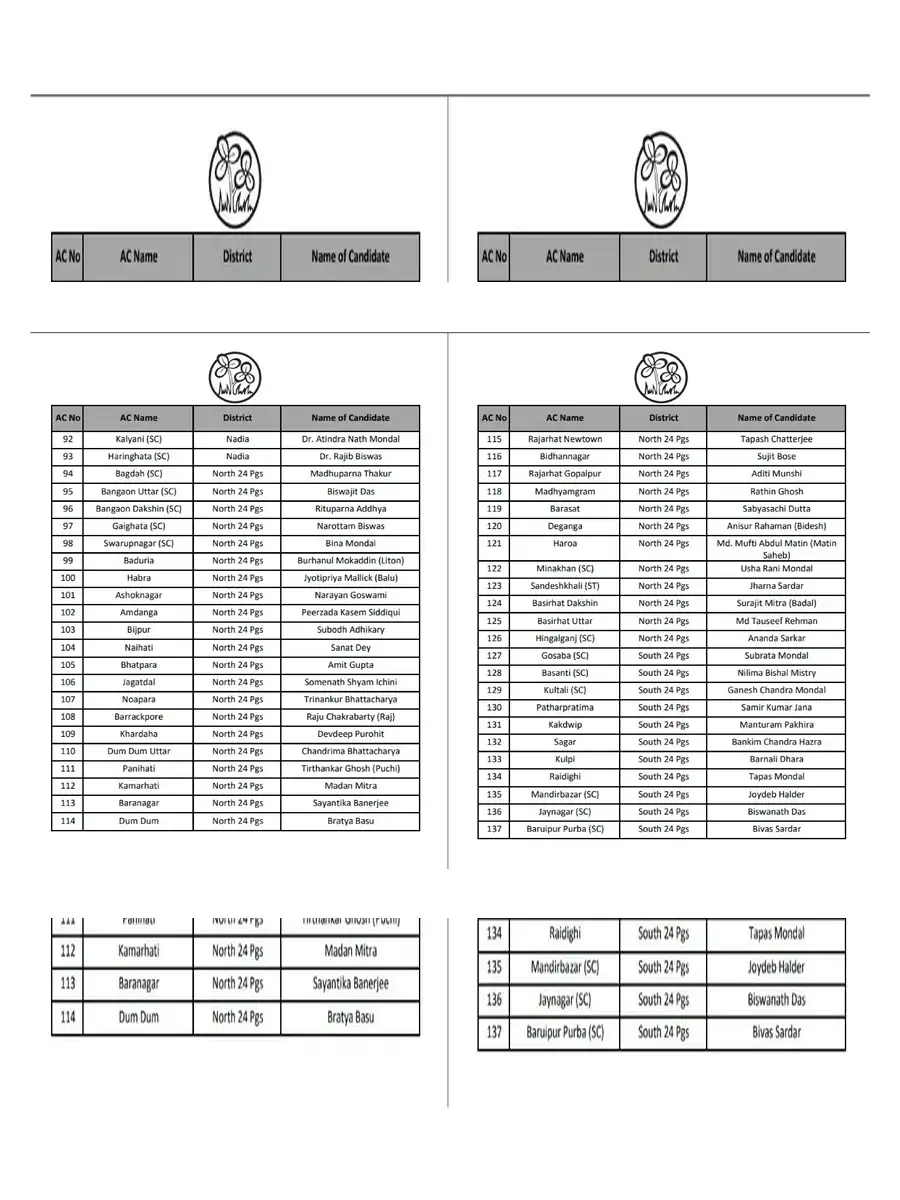 TMC Candidate List 2026 West Bengal
