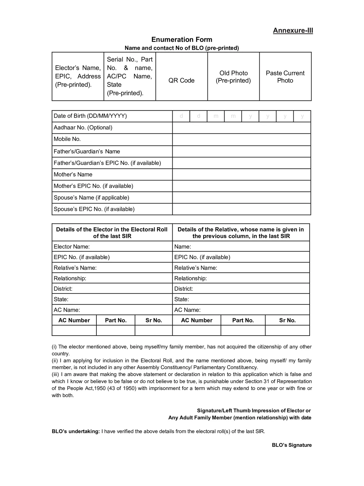 SIR Form is a vital document used during the Election Commission’s door-to-door verification campaigns and online enrollment drives to update voter lists nationwide. During SIR, which specifically targets comprehensive electoral roll verification and cleaning.