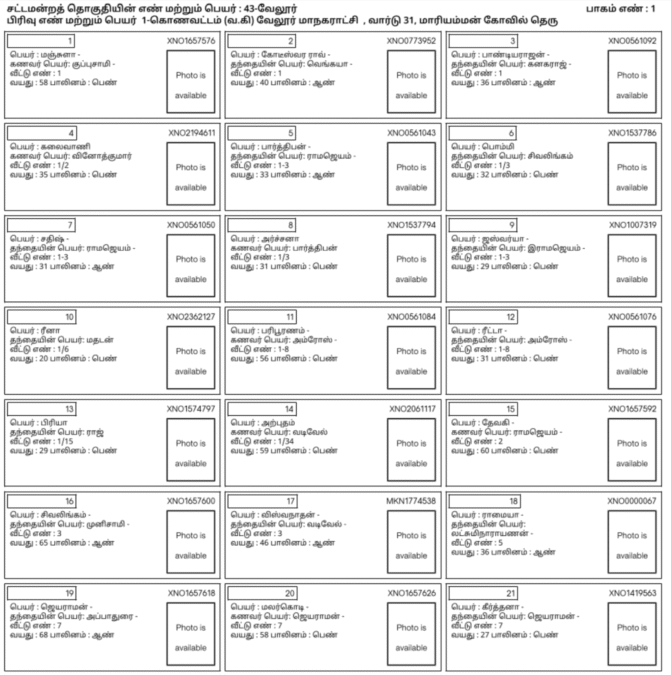 People can download this Tamil Nadu PDF electoral rolls file and can perform a manual search to find their name online in the complete Tamil Nadu CEO Voter List PDF with Photo.