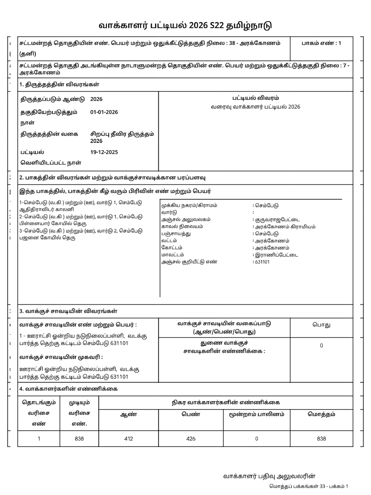 People can download this Tamil Nadu PDF electoral rolls file and can perform a manual search to find their name online in the complete Tamil Nadu CEO Voter List PDF with Photo.
