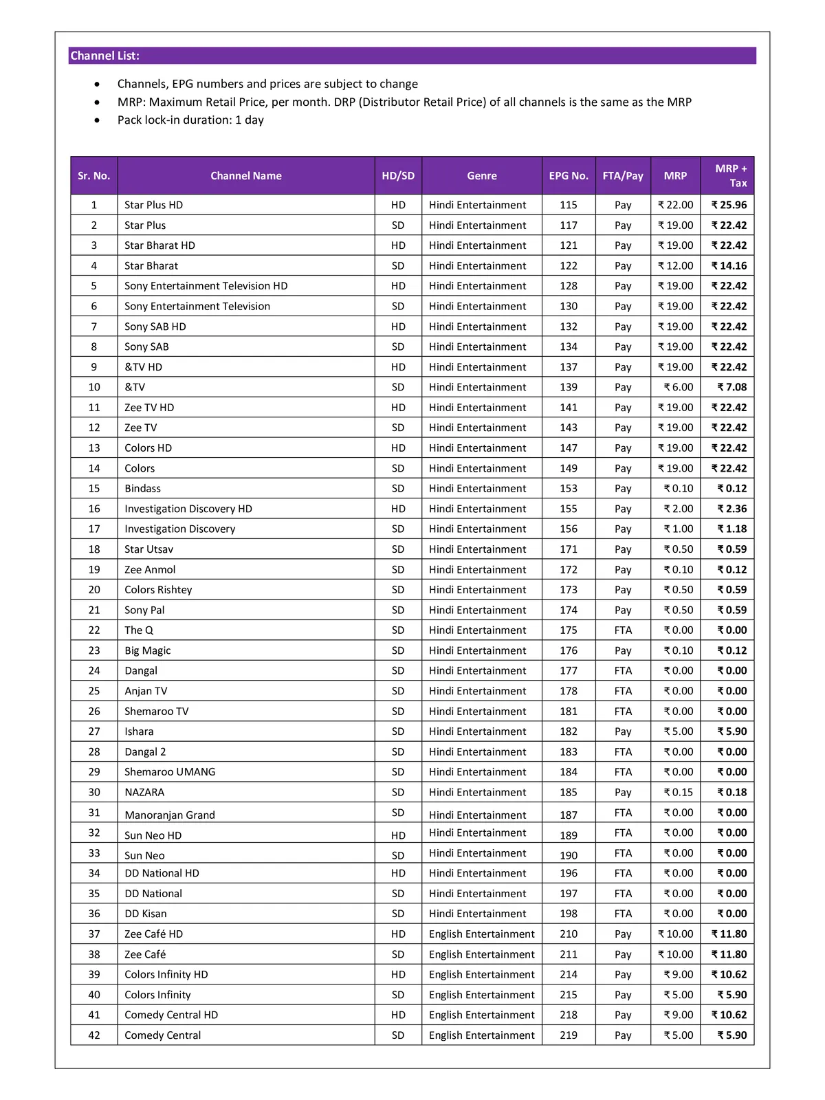 &TV HD | 137 | ₹22.42 |