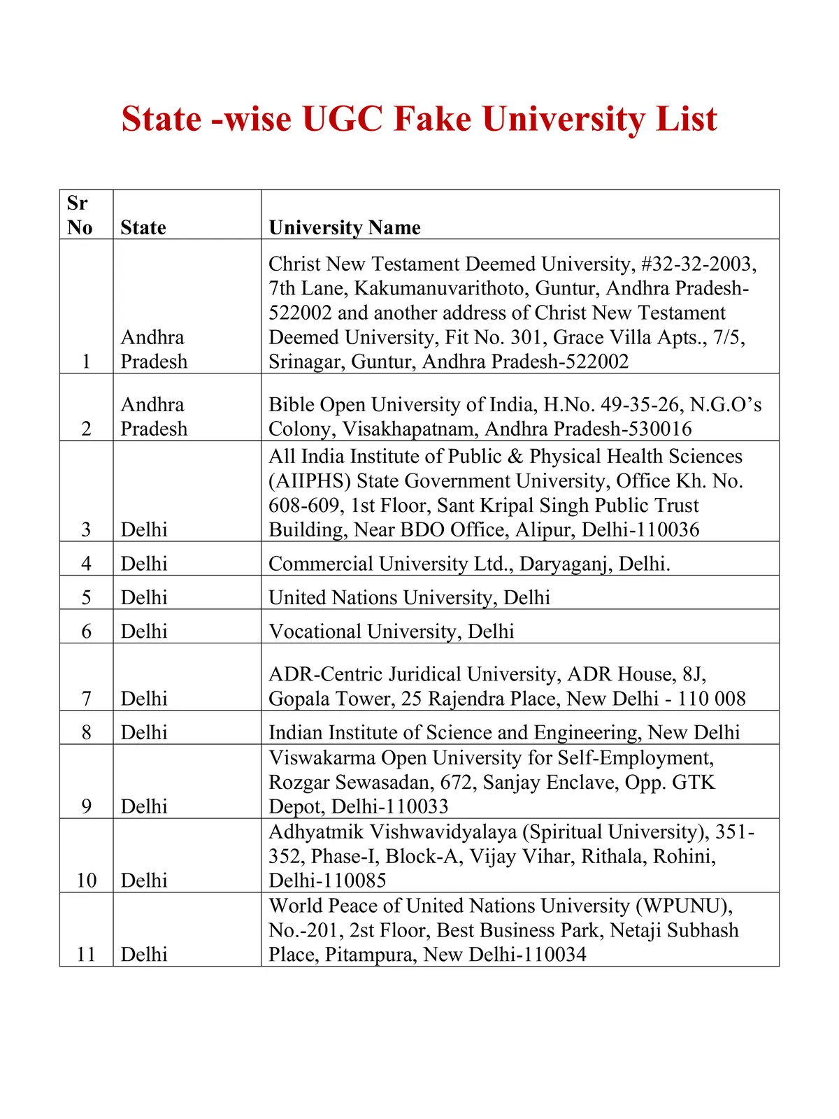 UGC Secretary Rajnish Jain said, “At least 22 self-styled, unrecognized institutions which are functioning in contravention of the UGC Act, have been declared as fake universities and these are not empowered to confer any degree. UGC also mentioned in the notification that “Section 23 of the UGC Act prohibits the use of the word ‘University’ by any institution other than a university established as stated above.”