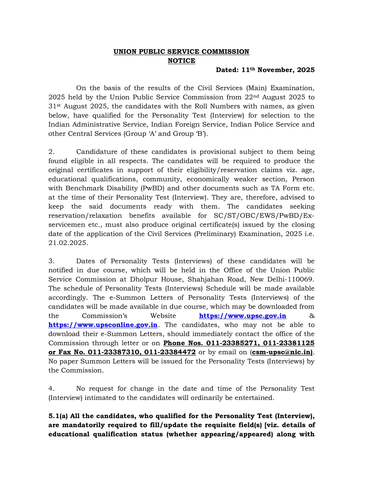 Candidates can click on the direct link below to download the UPSC CSE Mains Result 2025-