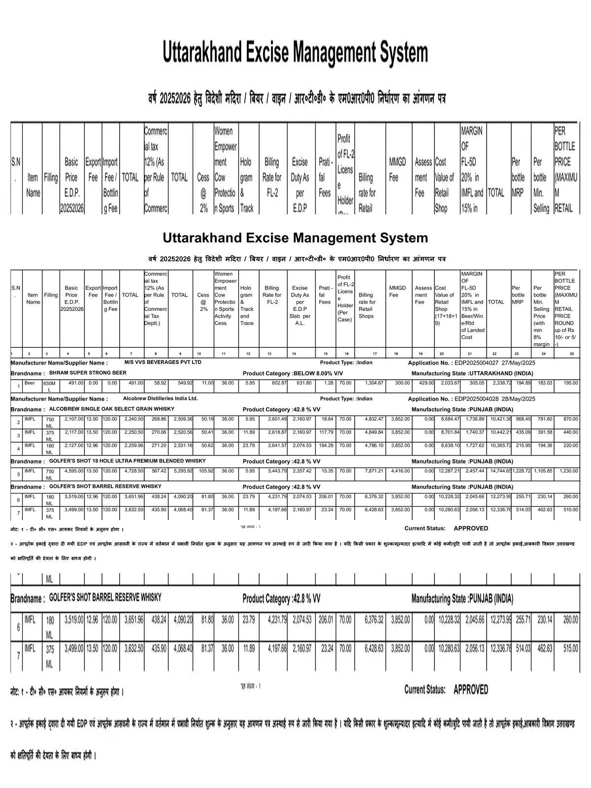 Uttarakhand Excise Liquor Price List PDF | Download PDF |