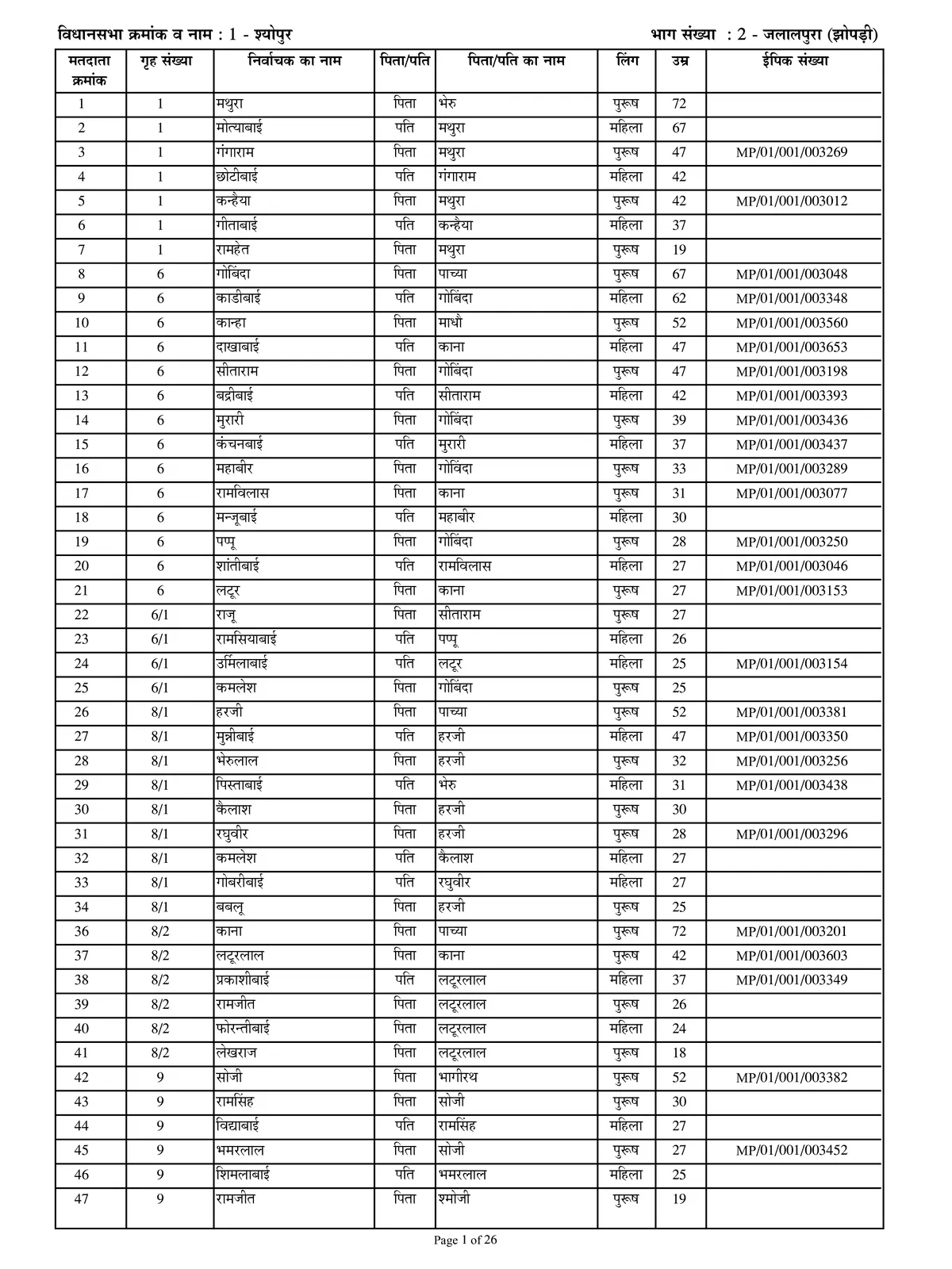 Madhya Pradesh Voter List 2003